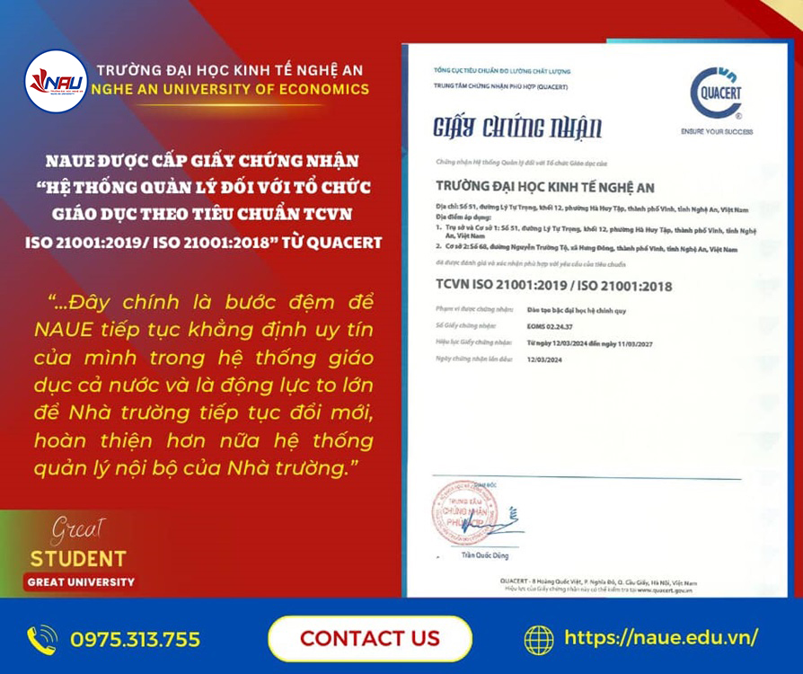 Trường Đại học Nghệ An không chỉ là một cơ sở giáo dục công lập chất lượng cao, mà còn là trung tâm sáng tạo và đổi mới, mang đến cho sinh viên môi trường học tập chuyên nghiệp, nhiều cảm hứng. Với mục tiêu là đào tạo nguồn nhân lực chất lượng cao, NAU không ngừng tìm kiếm những phương pháp đào tạo tiên tiến nhất, từ lý thuyết đến thực hành, để vươn tầm khu vực ASEAN và thế giới.
