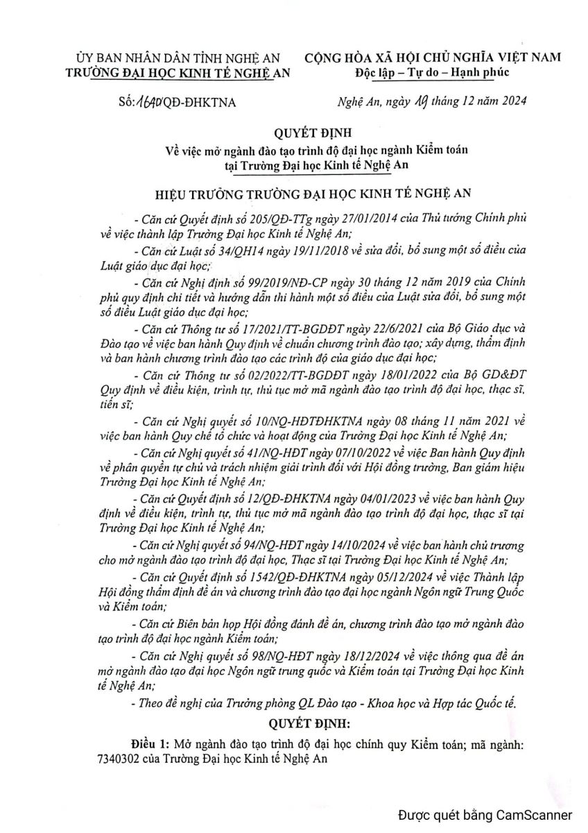 Quyết định mở ngành đào tạo Kiểm toán tại Trường Đại học Kinh tế Nghệ An 19/12/2024 09:34 1537 lượt xem
