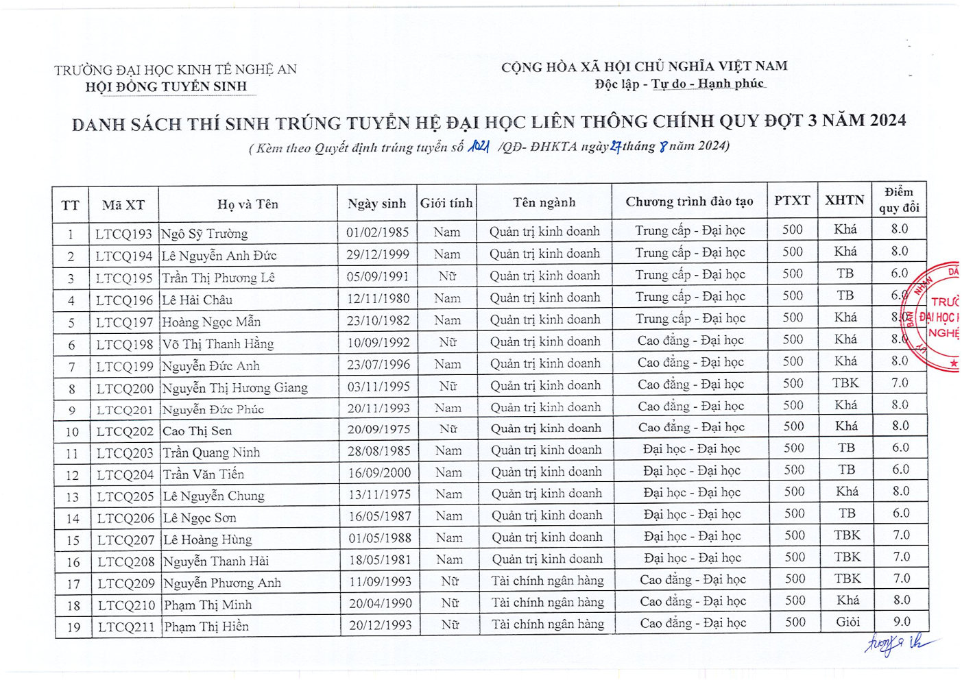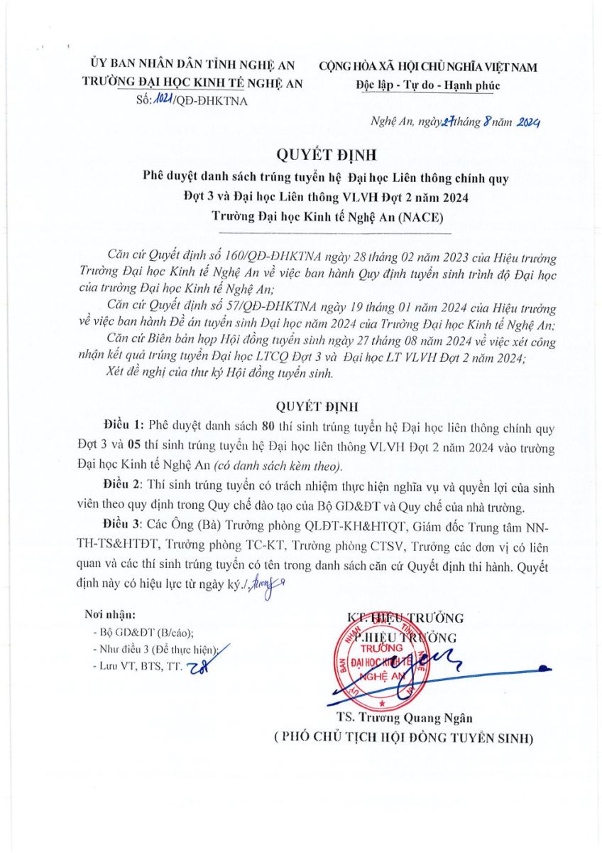Quyết định trúng tuyển ĐH Liên thông CQ đợt 3 và ĐH Liên thông VLVH đợt 2 năm 2024 27/08/2024 07:02 2231 lượt xem