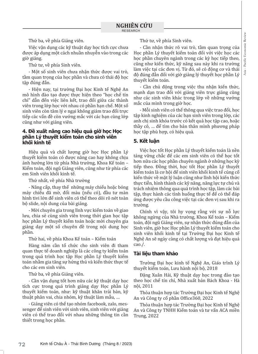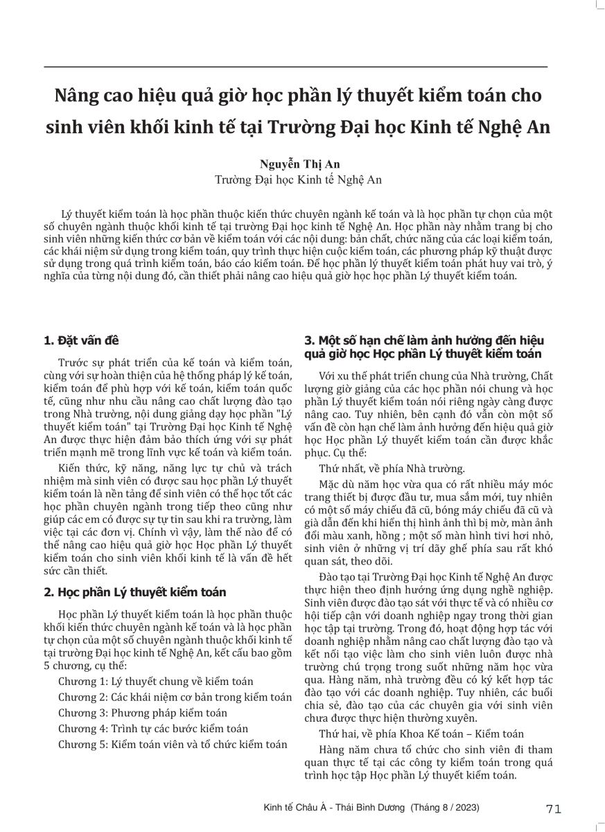 Nâng cao hiệu quả giờ học phần lý thuyết kiểm toán cho sinh viên khối kinh tế tại Trường Đại học Kinh tế Nghệ An 25/09/2023 10:40 5231 lượt xem