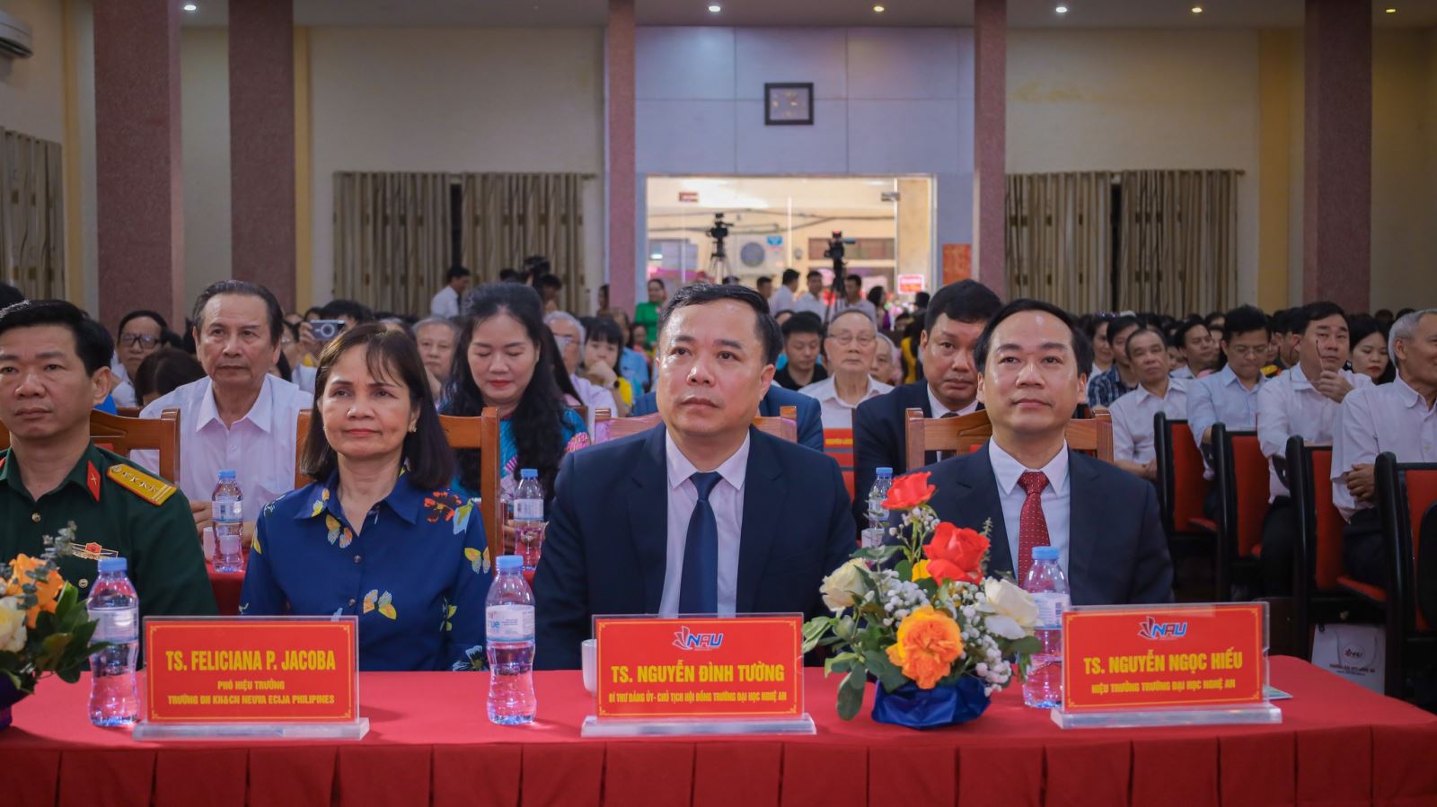 Về phía tỉnh Nghệ An có các đồng chí Ủy viên Ban Chấp hành Đảng bộ tỉnh: Bùi Đình Long – Phó Chủ tịch UBND tỉnh; Phạm Tuấn Vinh – Phó Bí thư chuyên trách Đảng ủy UBND tỉnh; Thái Văn Thành – Giám đốc Sở Giáo dục và Đào tạo, đại diện các ban, ngành, các trường đại học, cao đẳng và đông đảo các thế hệ lãnh đạo, giảng viên của nhà trường.