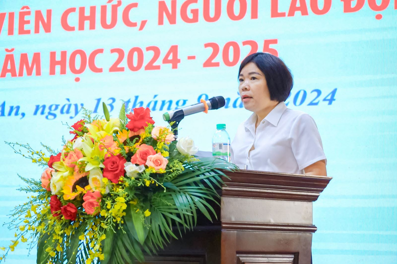 TS. Đặng Thị Thảo - Chủ tịch Công đoàn trường trình bày Báo cáo kết quả quả hoạt động của Công đoàn trường năm học 2023-2024 và triển khai nhiệm vụ năm học 2024-2025
