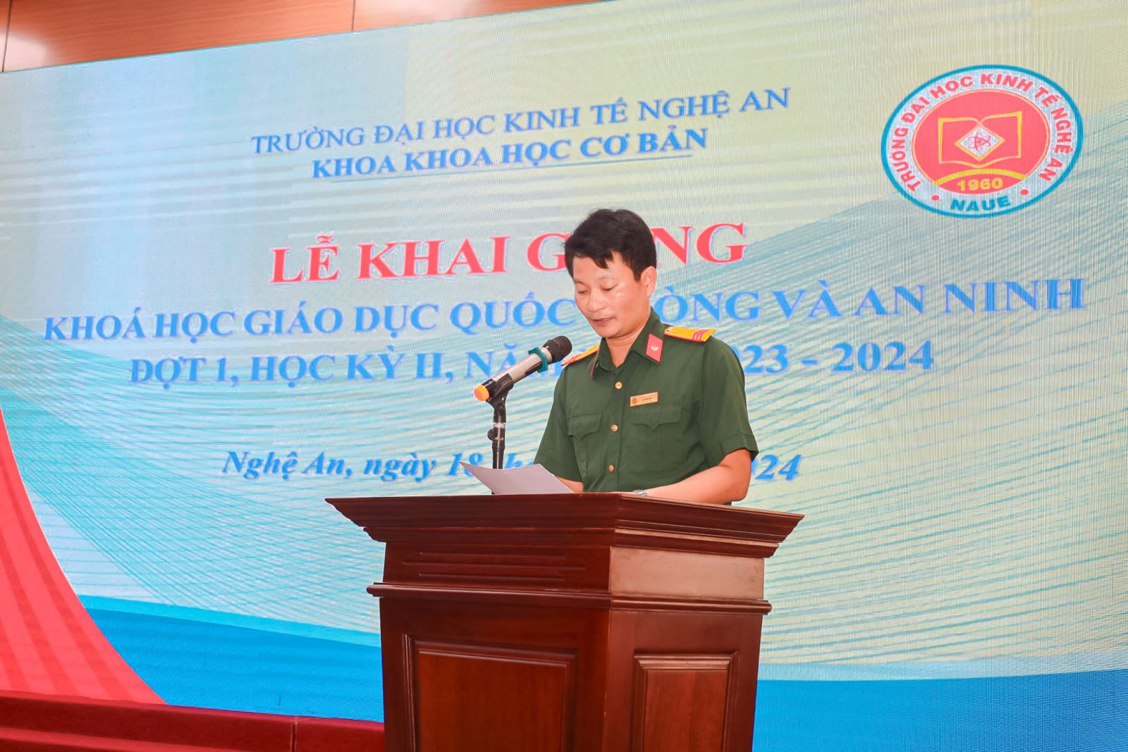 Thực hiện kế hoạch đào tạo năm học 2023-2024, chiều ngày 18/6/2024 tại Trường Đại học Kinh tế Nghệ An long trọng tổ chức lễ khai mạc khóa học giáo dục quốc phòng và an ninh cho sinh viên khóa 9 của Trường.