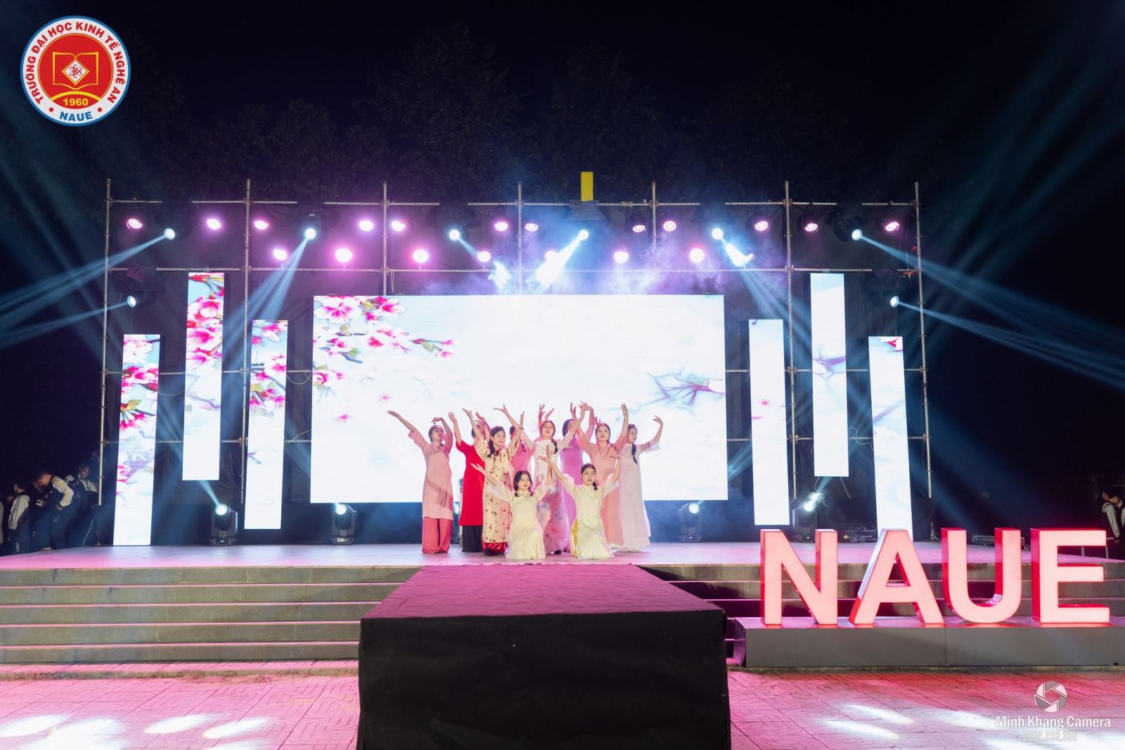 Phần 2: "Shine Bright" – Các tiết mục nghệ thuật đỉnh cao do sinh viên NAUE và sinh viên các trường bạn, đặc biệt có sự tham gia của các em học sinh Trường Dân tộc nội trú tỉnh Nghệ An biểu diễn đã biến sân khấu thành bữa tiệc âm nhạc rực rỡ, truyền tải năng lượng tích cực đến toàn bộ người tham dự.