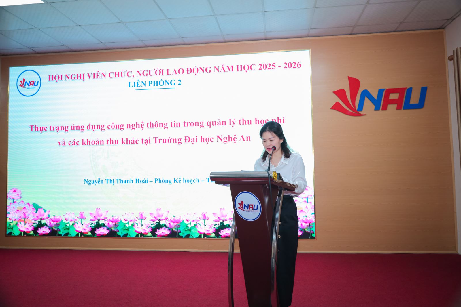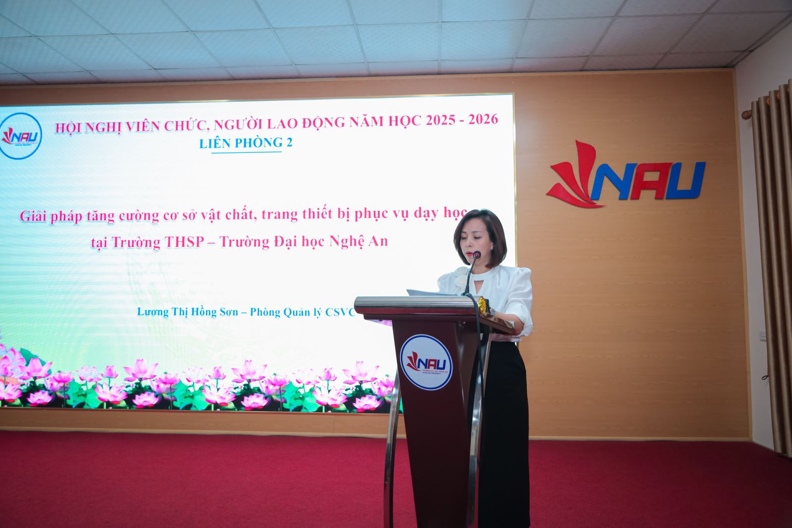 Ngày 29 tháng 07 năm 2025, toàn thể cán bộ, nhân viên của Phòng Quản lý Cơ sở vật chất cùng các phòng Tổ chức – Hành chính và Kế hoạch – Tài chính thuộc Liên phòng 2, Trường Đại học Nghệ An, đã tham dự Hội nghị Viên chức, người lao động năm học 2025-2026. Hội nghị diễn ra vào lúc 14h ngày 29 tháng 07 năm 2025, với sự tham dự của Ban Giám hiệu và trưởng các đơn vị hành chính của Trường. Đặc biệt, Hội nghị vinh dự đón tiếp TS. Nguyễn Đình Tường – Bí thư Đảng ủy, Chủ tịch Hội đồng trường và TS. Nguyễn Ngọc Hiếu – Hiệu trưởng Nhà trường đến tham dự và chỉ đạo.