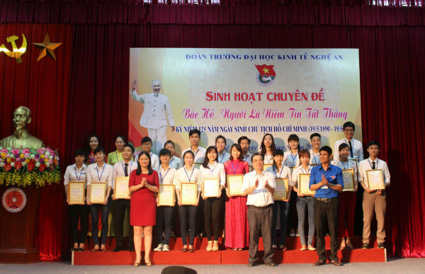 Thiết thực thi đua lập thành tích Chào mừng Đại hội Đảng bộ Trường Đại học Kinh tế Nghệ An lần thứ VI, nhiệm kỳ 2015 – 2020, Hướng tới kỷ niệm 125 năm ngày sinh Chủ tịch Hồ Chí Minh (19/05/1890 – 19/05/2015). Tối ngày 14/5/2015, Đoàn trường Đại học Kinh tế Nghệ An long trọng tổ chức buổi sinh hoạt chuyên đề “Bác Hồ - Người là niềm tin tất thắng”.