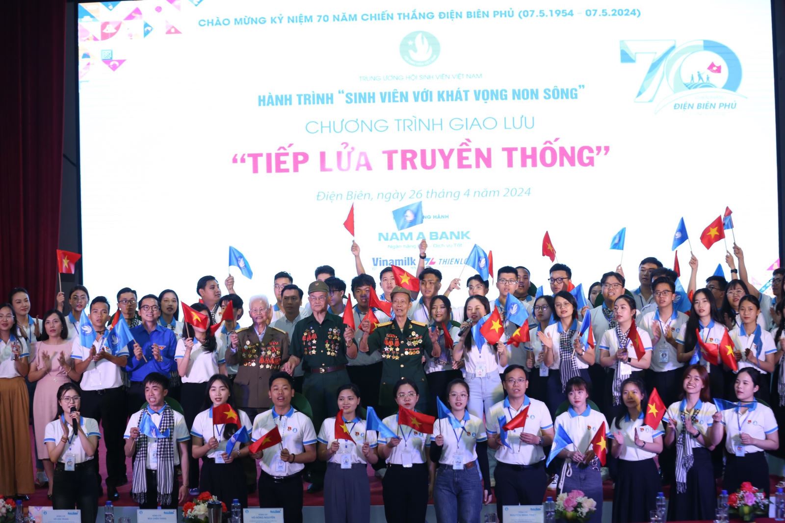 Nằm trong hành trình Sinh viên với khát vọng non sông, chiều ngày 26/4/2024, tại thành phố Điện Biên Phủ, 70 đại biểu hành trình đã được tham gia chương trình giao lưu tiếp lửa truyền thống “Sinh viên với khát vọng non sông”. Đây là hoạt có ý nghĩa chính trị, xã hội và nhân văn sâu sắc nhằm ôn lại truyền thống cách mạng vẻ vang của dân tộc ta, thể hiện tình cảm, lòng biết ơn vô hạn đối với những người đã có công lao đóng góp cho chiến thắng “lừng lẫy năm châu, chấn động địa cầu”, tiếp tục xây dựng và tăng cường niềm tin, ý chí quyết tâm thực hiện thắng lợi nhiệm vụ bảo vệ tổ quốc, xây dựng đất nước ta ngày càng phồn vinh, văn minh, hạnh phúc.