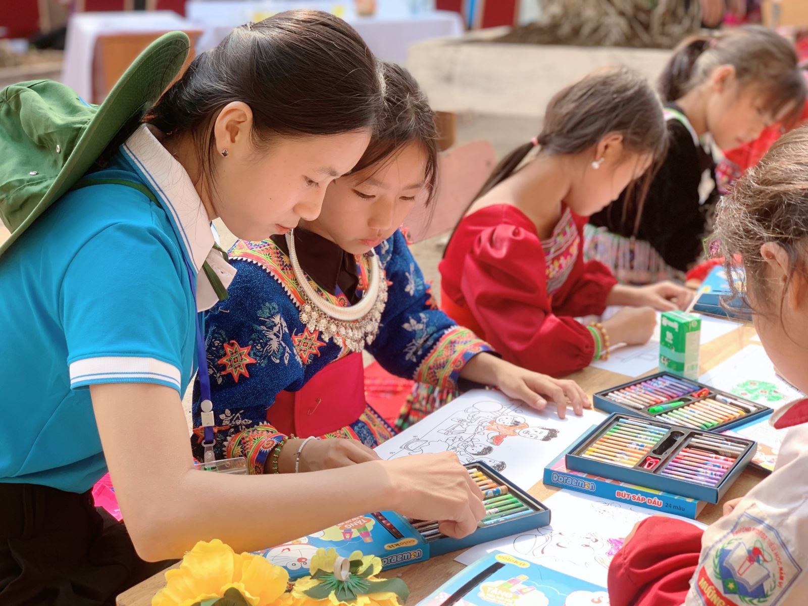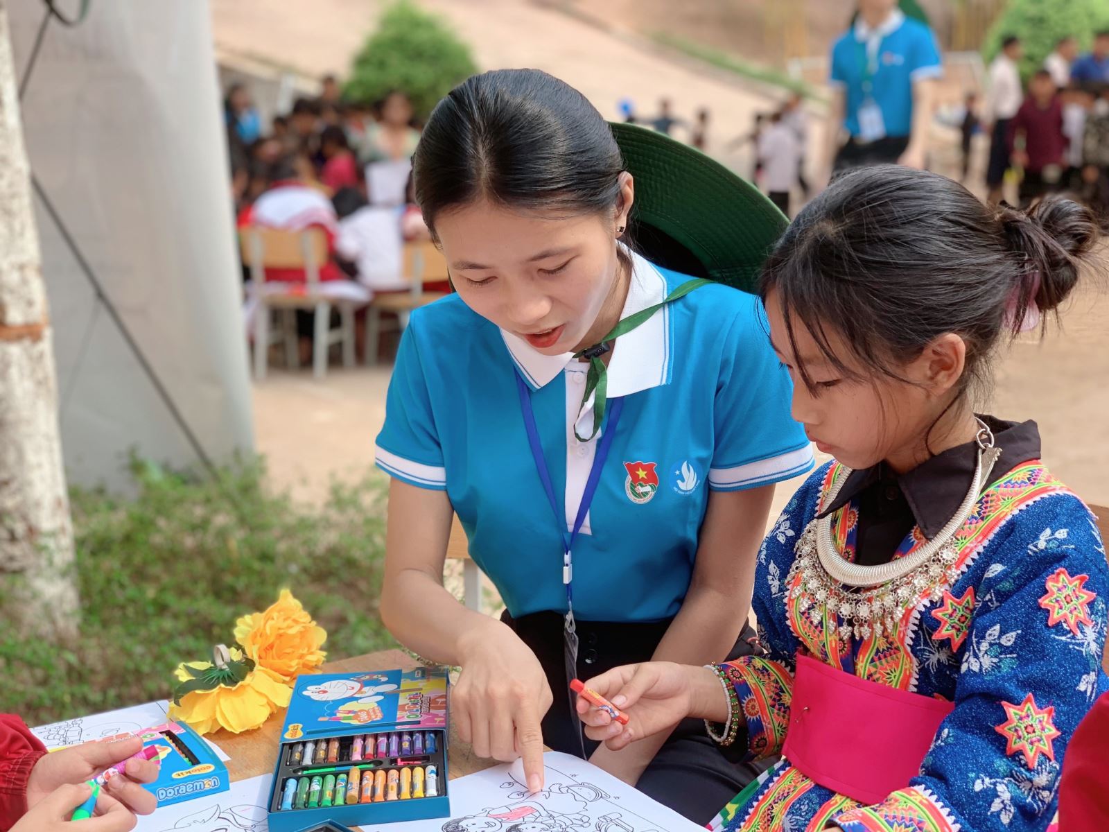 Sinh viên Bùi Thị Trà cùng đoàn đại biểu tham gia Hành trình Sinh viên với khát vọng non sông đã đến Trường PTDT bán trú tiểu học Nậm Vì (xã Nậm Vì, H.Mường Nhé, tỉnh Điện Biên) để thực hiện các hoạt động an sinh xã hội