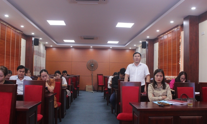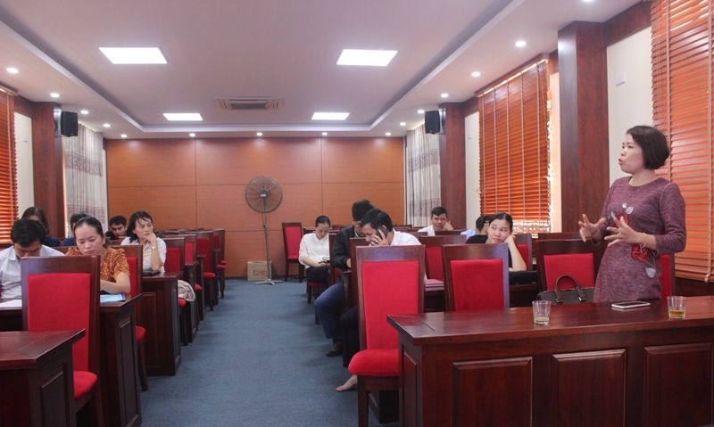 Đ/c Nguyễn Thị Minh - Cán bộ phòng Quản lý Đào tạo - Khoa học & HTQT trình bày tham luận