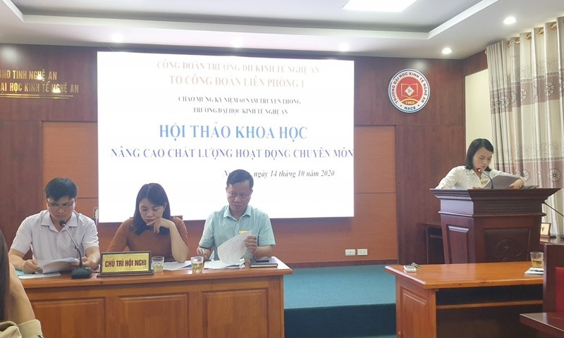 Được sự nhất trí của Đảng ủy, Ban Giám hiệu; thực hiện chương trình chào mừng kỷ niệm 60 năm truyền thống trường Đại học Kinh tế Nghệ An và kế hoạch hoạt động công đoàn năm 2020 - 2021. Sáng 14/10/2020, Tổ Công đoàn Liên phòng 1 tổ chức Hội thảo “Nâng cao chất lượng hoạt động chuyên môn của Tổ CĐ Liên phòng 1”.