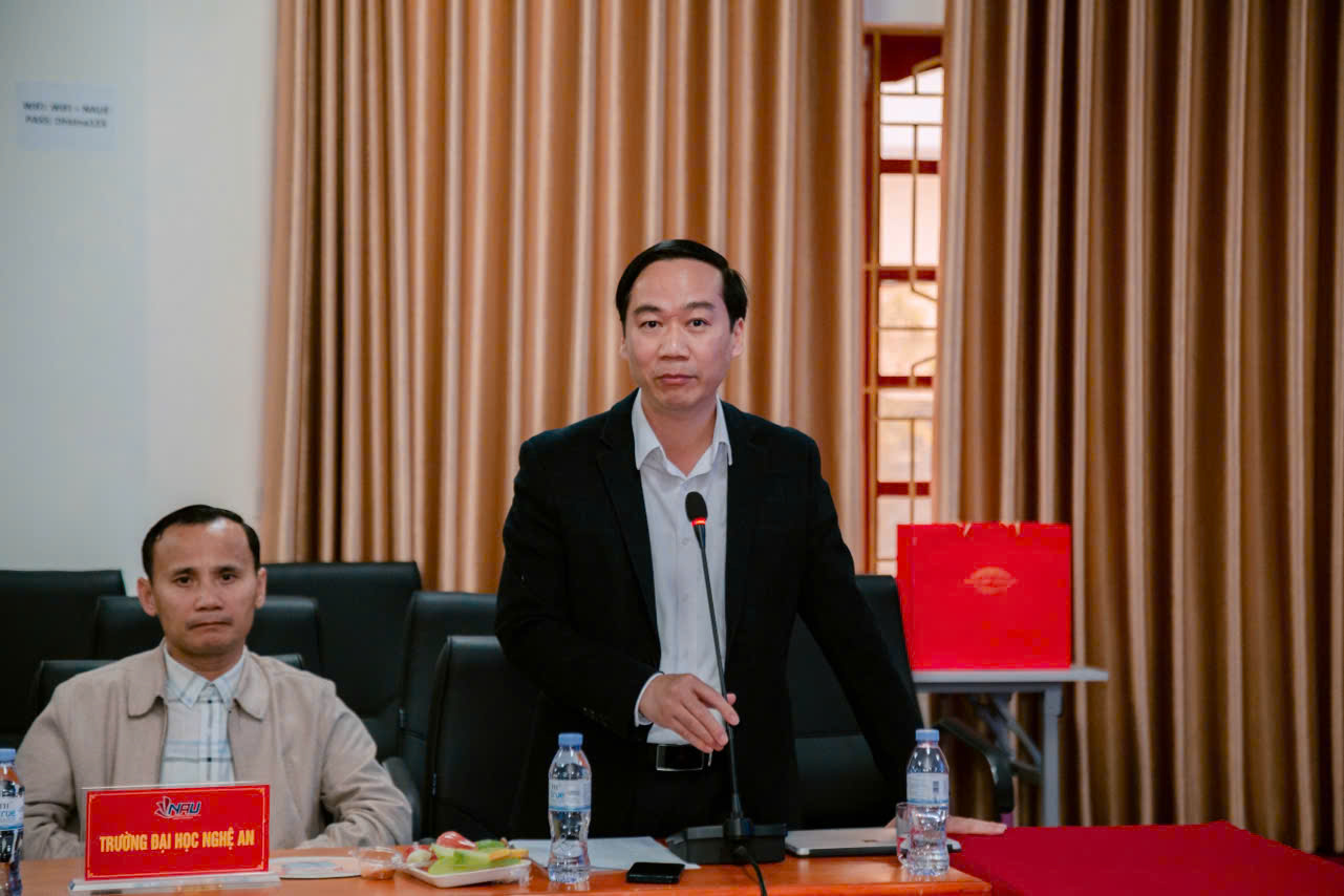Về phía Trường Đại học Nghệ An, tham dự buổi làm việc có Ban Giám hiệu cùng trưởng, phó các đơn vị trong toàn trường. Thay mặt Ban Giám hiệu, Tiến sĩ Nguyễn Ngọc Hiếu – Hiệu trưởng Nhà trường đã nhiệt liệt chào mừng Đoàn công tác, đồng thời giới thiệu khái quát về quá trình hình thành và phát triển của Trường Đại học Nghệ An. TS. Nguyễn Ngọc Hiếu nhấn mạnh, nhận thức rõ tầm quan trọng của việc áp dụng Bộ tiêu chuẩn ISO 21001:2018 trong bối cảnh hội nhập giáo dục hiện nay, Nhà trường đã chủ động triển khai nhiều hoạt động thiết thực như đánh giá chất lượng nội bộ, mời chuyên gia tập huấn, tham dự các hội nghị học hỏi kinh nghiệm từ những cơ sở giáo dục đại học uy tín, và tích cực tham gia mạng lưới đảm bảo chất lượng trong nước và quốc tế.