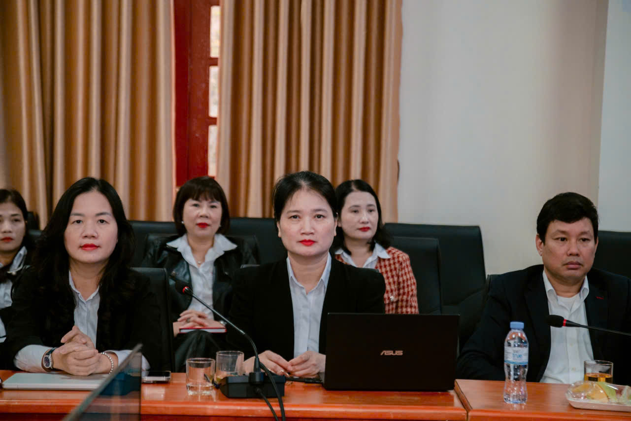 ThS Đinh Thị Thu Hương - Trưởng phòng Thanh tra, Khảo thí và Đảm bảo chất lượng trao đổi kinh nghiệm với Đoàn công tác