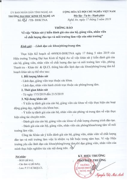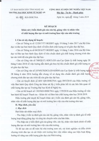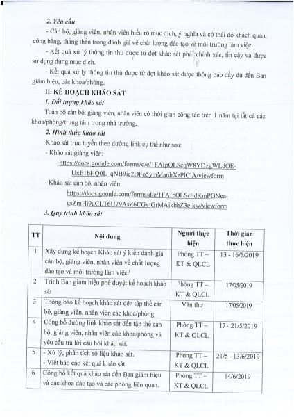 Kế hoạch khảo sát cán bộ, giảng viên, nhân viên về môi trường làm việc 23/05/2019 10:01 10109 lượt xem Download văn bản tại đây.