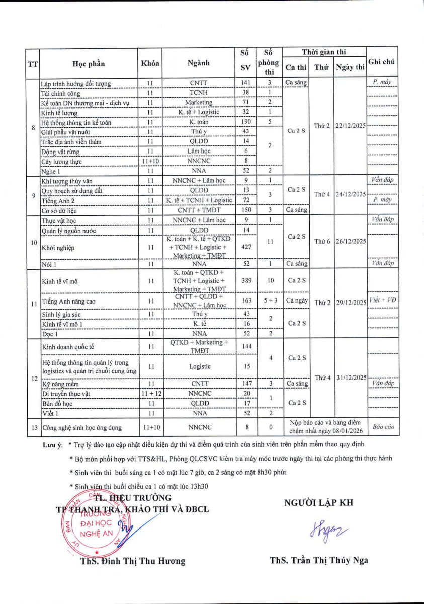 Lịch thi kết thúc học phần Khóa 11 lần 2, kỳ 2, năm học 2024-2025