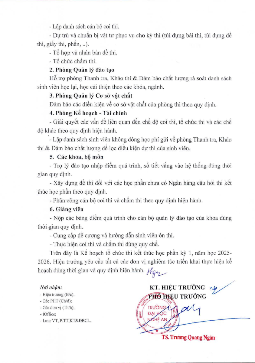 Lịch thi kết thúc học phần Khóa 8 học lại và lần 2, kỳ 2, năm học 2024-2025