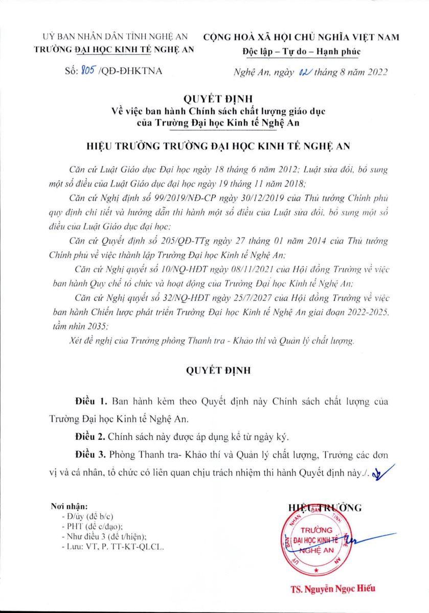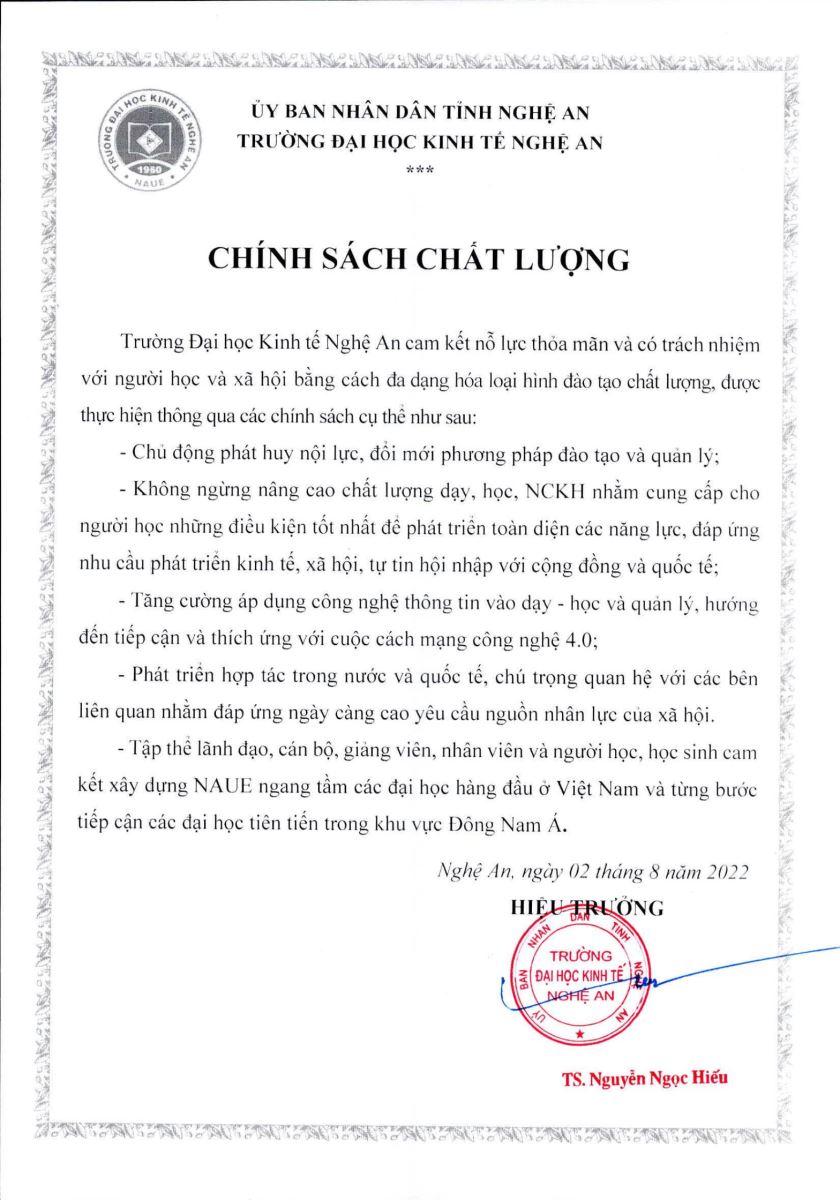 Quyết định về việc ban hành Chính sách chất lượng giáo dục của Trường Đại học Kinh tế Nghệ An 02/08/2022 09:01 8941 lượt xem