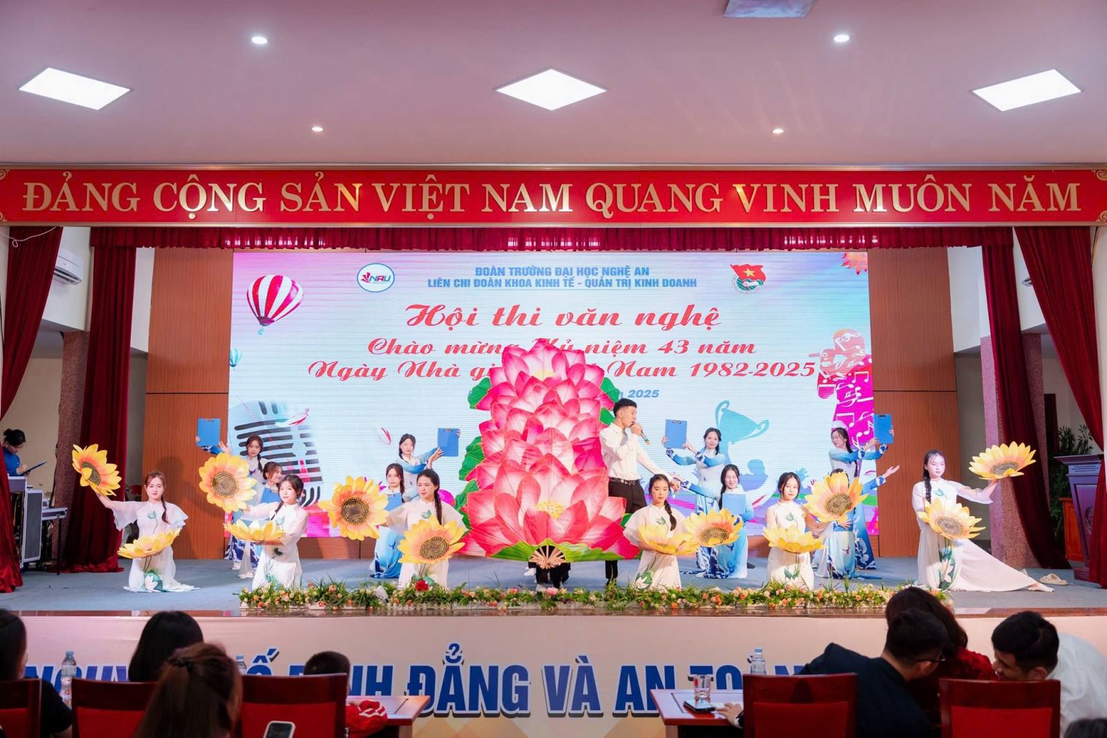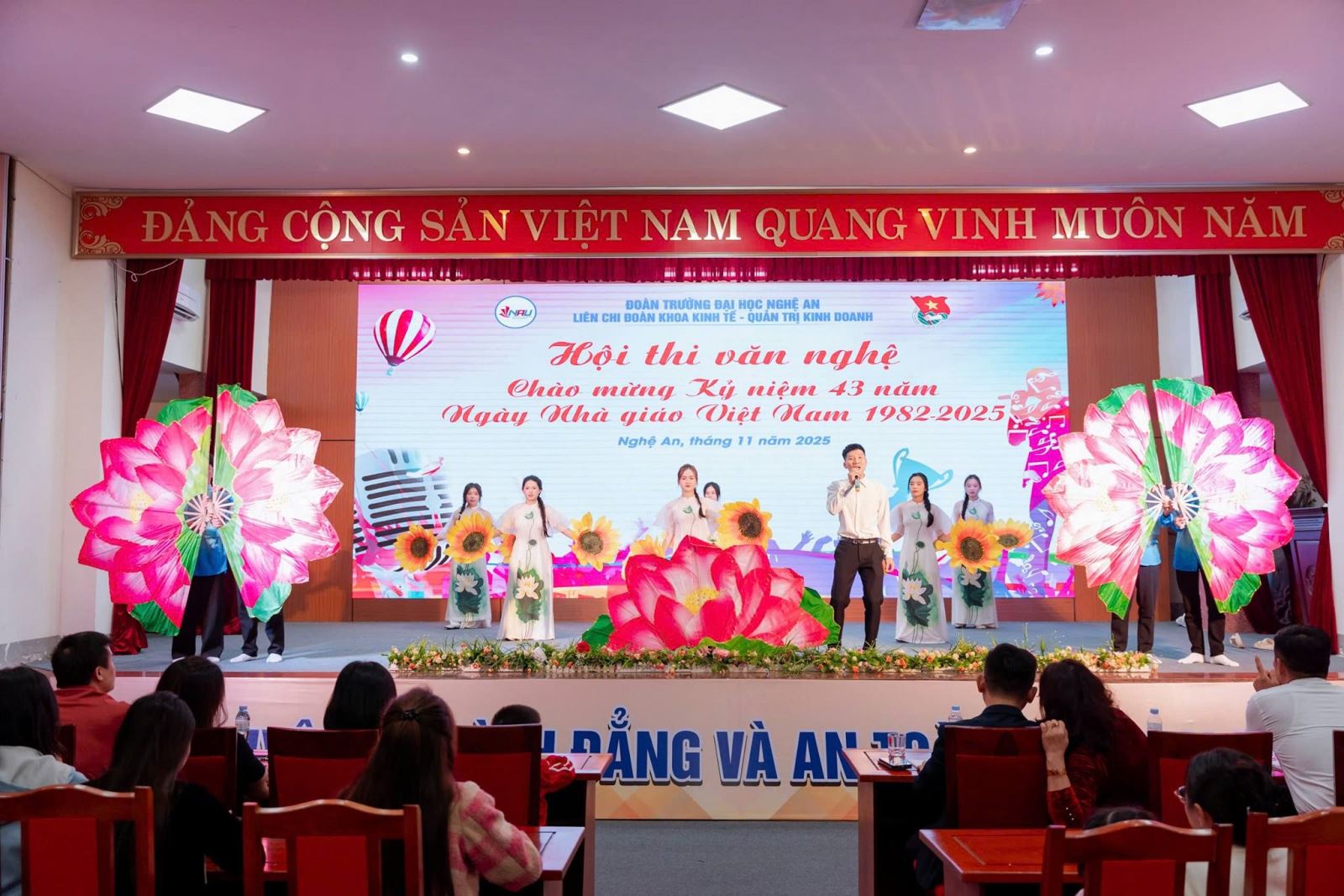 Những tiết mục biểu diễn của sinh viên trong Chương trình văn nghệ tri ân thầy cô nhân Ngày Nhà giáo Việt Nam 20/11 do Liên chi đoàn Khoa Kinh tế – Quản trị Kinh doanh tổ chức đã mang đến một không gian nghệ thuật rực rỡ, giàu cảm xúc và tràn đầy ý nghĩa. Dù ngày 20/11 đã khép lại, nhưng dư âm của lòng biết ơn và tình thầy trò vẫn còn vang vọng trong từng giai điệu, từng động tác múa mà các bạn sinh viên đã gửi gắm bằng tất cả sự chân thành.