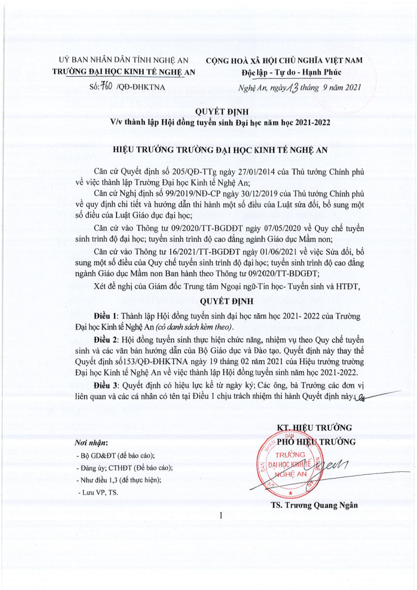 Thông báo điểm trúng tuyển hệ Đại học chính quy năm 2020