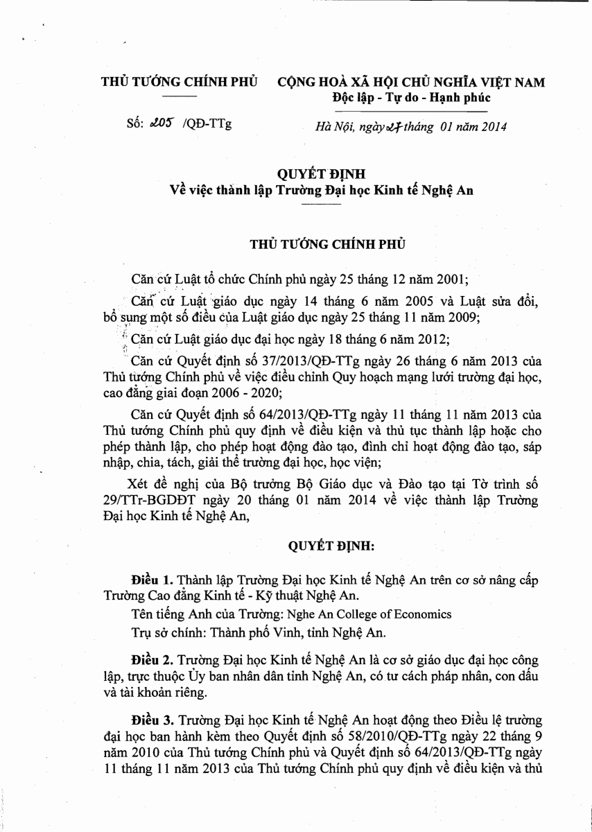 VỀ VIỆC THÀNH LẬP TRƯỜNG ĐẠI HỌC KINH TẾ NGHỆ AN