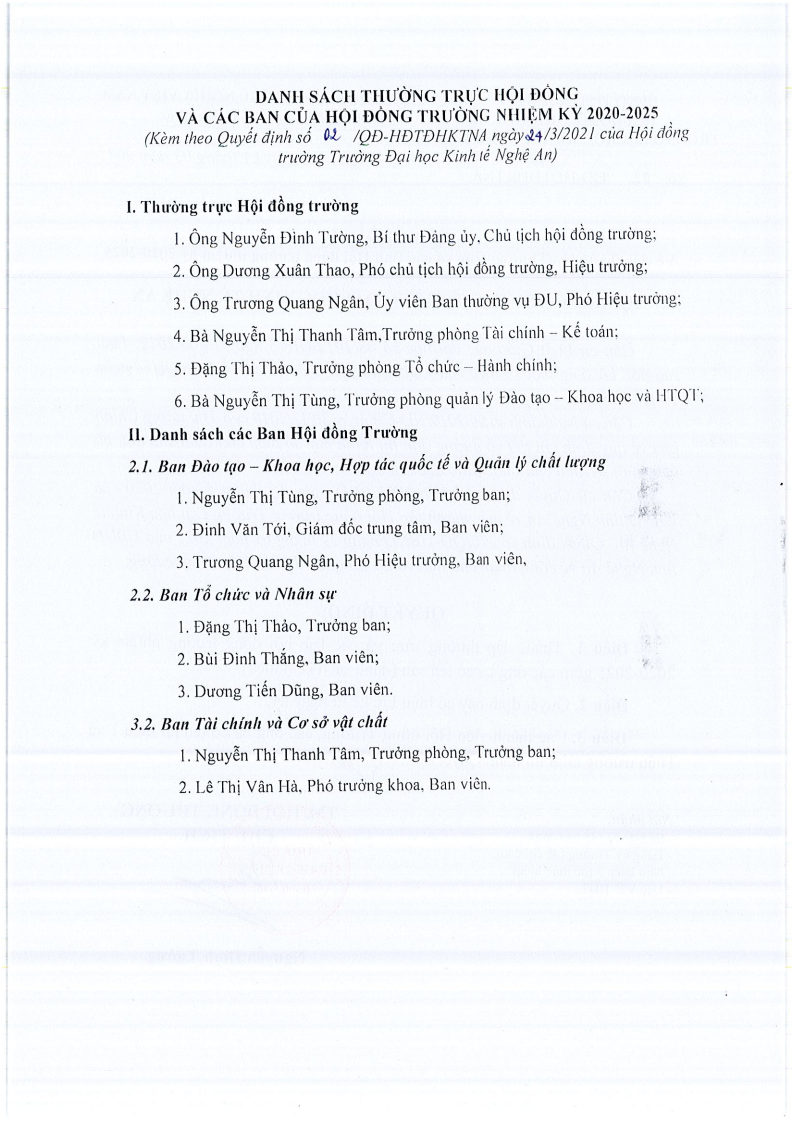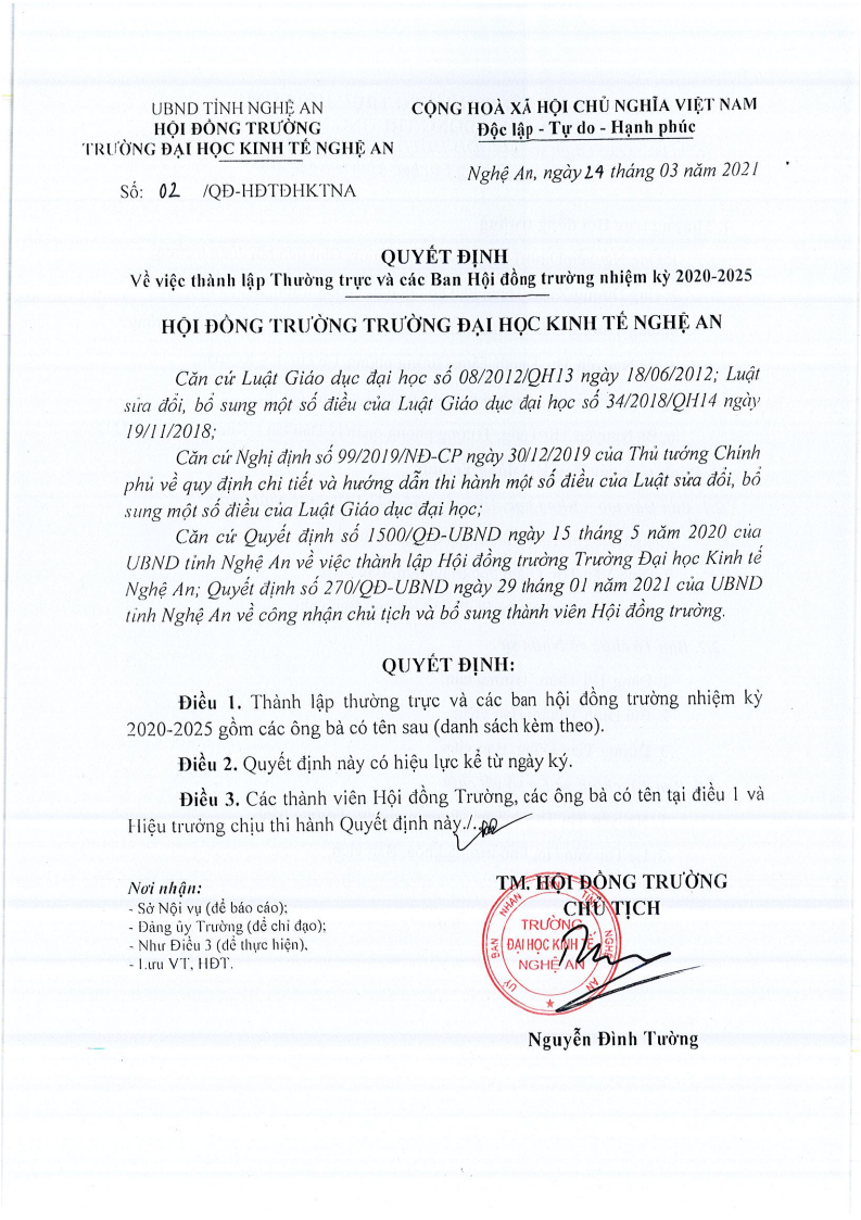 Quyết định thành lập Thường trực và các Ban Hội đồng trường nhiệm kỳ 2020-2025 03/04/2021 03:29 5681 lượt xem
