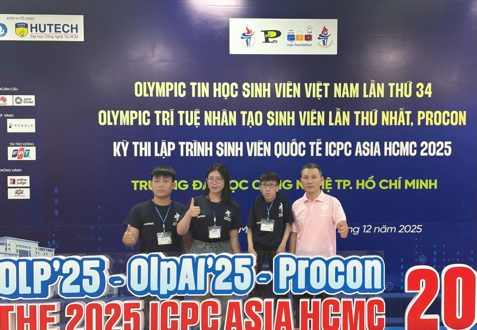 Theo chương trình, vào chiều mai, Thứ Tư, ngày 10/12/2025, đội tuyển sẽ tham gia phần Thi giải cá nhân OLP’25. Đây là một trong những hoạt động trọng điểm nằm trong khuôn khổ Olympic Tin học Sinh viên Việt Nam và Olympic Trí tuệ Nhân tạo Sinh viên Việt Nam, được tổ chức tại Trường Đại học Công nghệ TP Hồ Chí Minh (HUTECH).