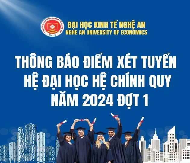 Hội đồng tuyển sinh Trường Đại học Kinh tế Nghệ An thông báo điểm xét tuyển hệ Đại học chính quy đợt 1 năm 2024 như sau: