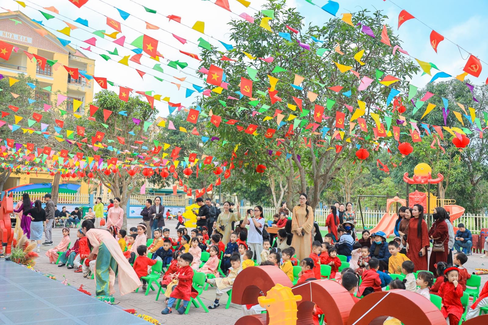 Mỗi hoạt động không chỉ mang đến tiếng cười giòn tan, mà còn giúp trẻ cảm nhận Tết bằng trải nghiệm thực tế, nuôi dưỡng tình yêu gia đình, quê hương và truyền thống dân tộc ngay từ những năm đầu đời.