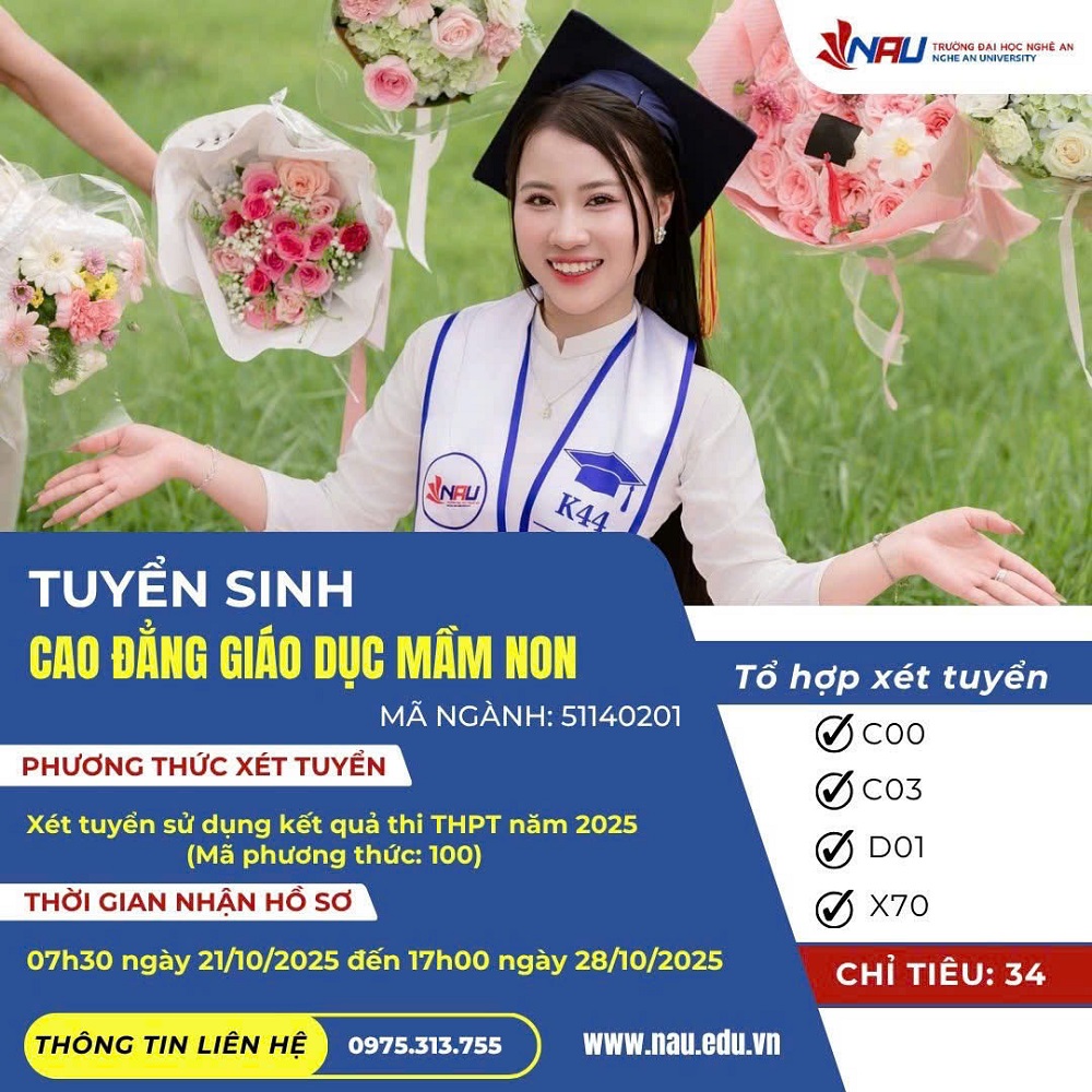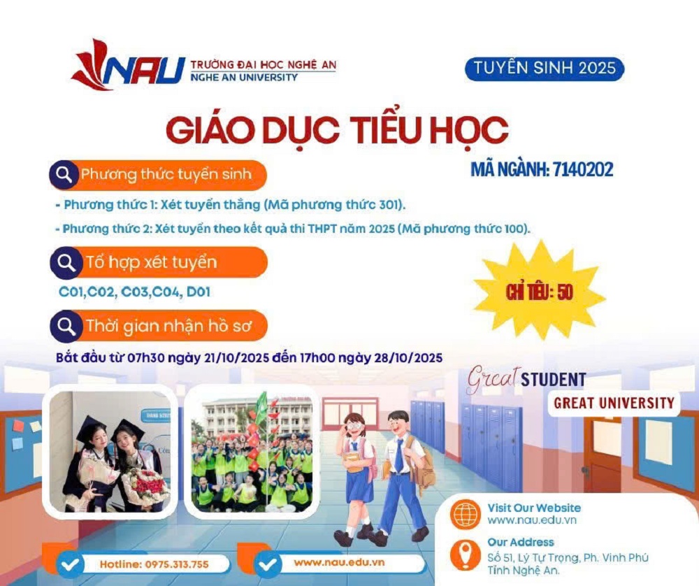 👩🏫 Trường Đại học Nghệ An thông báo tuyển sinh đại học các ngành Sư phạm Khoa học tự nhiên, Giáo dục Tiểu học và Cao đẳng Giáo dục Mầm non năm 2025
