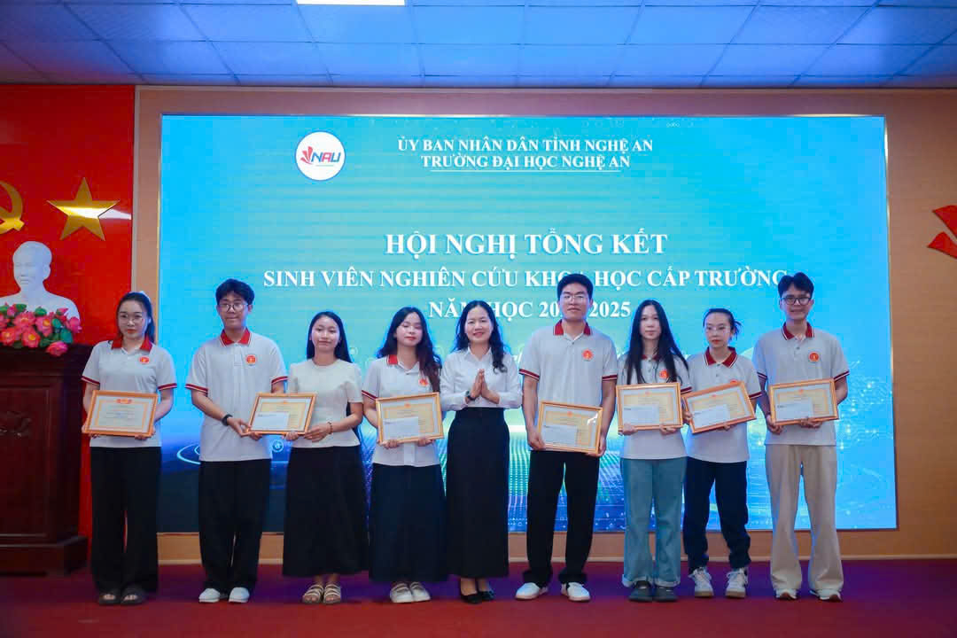 Năm học 2024-2025, công tác nghiên cứu khoa học của Trường Đại học Nghệ An đã có những sự thay đổi lớn về số lượng và chất lượng, đạt được kết quả đáng ghi nhận: có 35 bài báo khoa học quốc tế, trong đó có 15 thuộc WoS/ Scopus; 170 bài báo khoa học quốc gia; 04 bài khoa học cấp Tỉnh; 08 bài báo hội thảo quốc tế; 34 bài báo hội thảo quốc gia; 05 bài báo hội thảo cấp Tỉnh;  02 bài báo hội thảo cấp Trường; 16 bài báo tạp chí cấp Tỉnh; 47 bài tạp chí cấp Trường; 02 đề tài trọng điểm; 35 đề tài cấp Trường; 233 Seminar cấp bộ môn; 46 đề tài cấp Trường của sinh viên; 19 dự án khởi nghiệp của sinh viên. Nhà trường đã tổ chức đánh giá và xét giải thưởng sinh viên NCKH cấp Trường, kết quả Hội đồng đánh giá chọn được 22 giải thưởng: 06 giải nhất, 06 giải nhì; 06 giải ba và 04 giải khuyến khích.