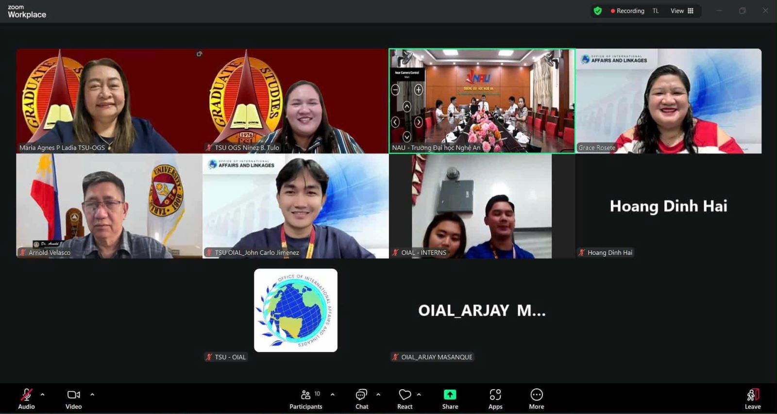 Một số hình ảnh của buổi làm việc trực tuyến bằng hình thức online giữa Trường Đại học Nghệ An với Trường Đại học Tarlac