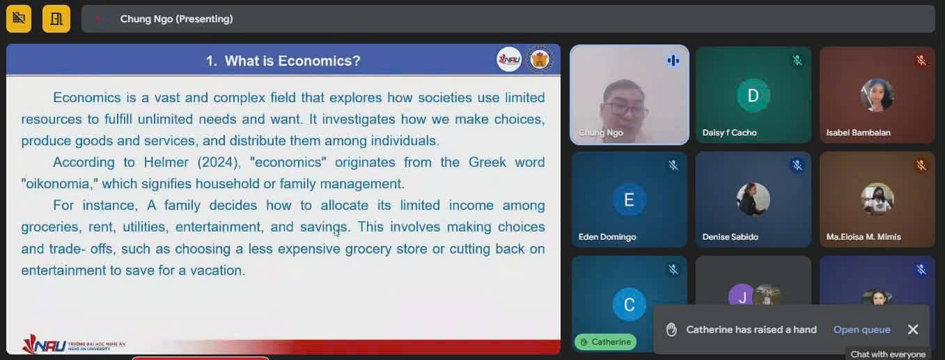 TS. Ngô Văn Chung - Trưởng bộ môn Quản trị Kinh doanh, khoa Kinh tế – Quản trị Kinh doanh đã tham gia giảng dạy học phần Kinh tế vi mô cho sinh viên NEUST. Việc tham gia giảng dạy cho sinh viên quốc tế là nội dung trọng tâm trong chiến lược quốc tế hóa của Khoa Kinh tế - Quản trị Kinh doanh, đồng thời phù hợp với định hướng phát triển chung của Trường Đại học Nghệ An trong giai đoạn hiện nay. Thông qua các hoạt động trao đổi giảng viên, Nhà trường từng bước mở rộng không gian học thuật, tăng cường giao lưu chuyên môn, chia sẻ kinh nghiệm giảng dạy, nghiên cứu.