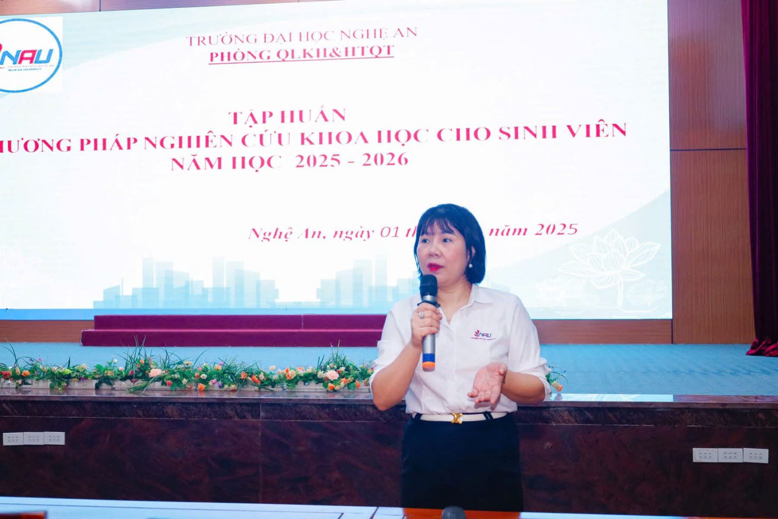Nghiên cứu khoa học là hoạt động quan trọng giúp sinh viên rèn luyện tư duy sáng tạo, kỹ năng giải quyết vấn đề và tạo nền tảng cho học tập, nghề nghiệp sau khi ra trường, nhận thấy tầm quan trọng đó, sáng ngày 01 tháng 11 năm 2025, tại Hội trường A1 Trường Đại học Nghệ An, Phòng Quản lý khoa học và Hợp tác quốc tế đã tổ chức chương trình tập huấn “Phương pháp nghiên cứu khoa học cho sinh viên” năm học 2025 – 2026.