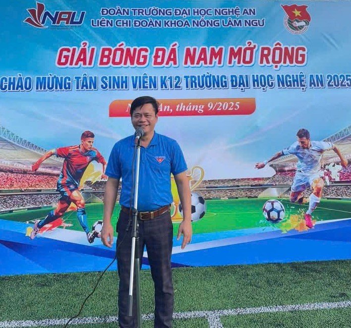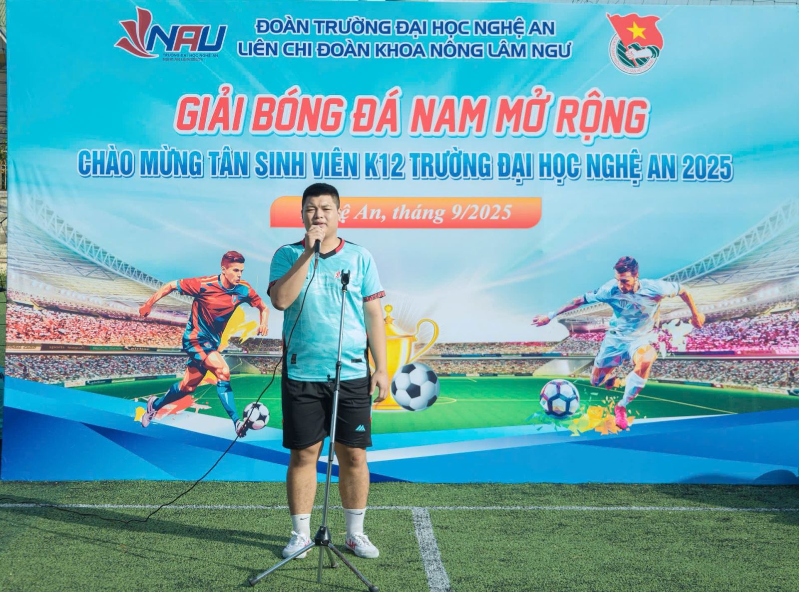 Sáng ngày 09/9/2025, tại sân vận động Trường Đại học Nghệ An đã diễn ra Lễ khai mạc Giải bóng đá nam mở rộng chào mừng Tân sinh viên K12. Đây là hoạt động thể thao ý nghĩa nằm trong chuỗi sự kiện Chào đón Tân sinh viên, nhằm tạo sân chơi lành mạnh, gắn kết sinh viên các khóa, đồng thời lan tỏa tinh thần đoàn kết, giao lưu hữu nghị giữa cán bộ, giảng viên, cựu sinh viên và lưu học sinh Lào.