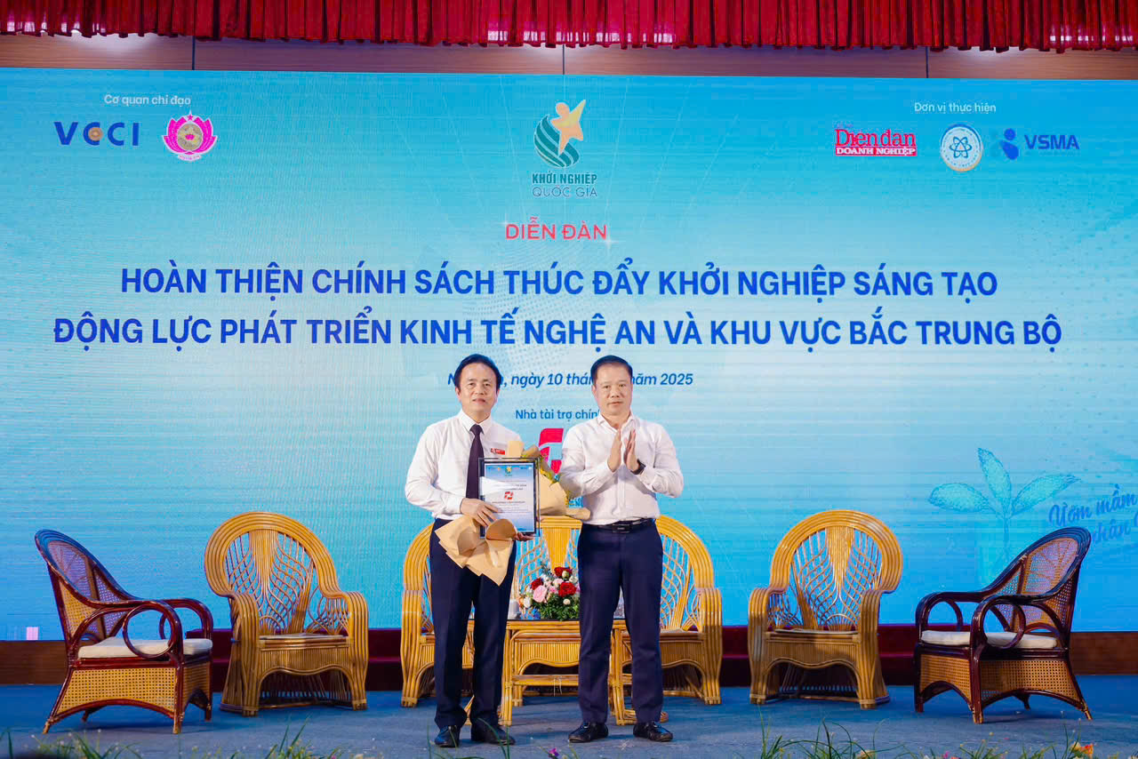 Chiều 10/10, trong khuôn khổ Ngày hội Khởi nghiệp sáng tạo Nghệ An mở rộng năm 2025, tại Trường Đại học Nghệ An, Liên đoàn Thương mại & Công nghiệp Việt Nam (VCCI) phối hợp UBND tỉnh Nghệ An tổ chức Diễn đàn “Hoàn thiện chính sách thúc đẩy khởi nghiệp sáng tạo, động lực phát triển kinh tế Nghệ An và khu vực Bắc Trung Bộ”.