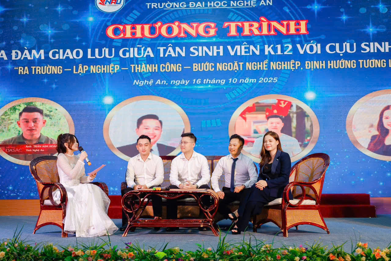 🌟 Tối ngày 16/10/2025, tại Hội trường A1, Trường Đại học Nghệ An đã tổ chức chương trình Tọa đàm giao lưu giữa tân sinh viên K12 và các cựu sinh viên – một hoạt động ý nghĩa trong chuỗi sự kiện chào năm học mới 2025–2026.