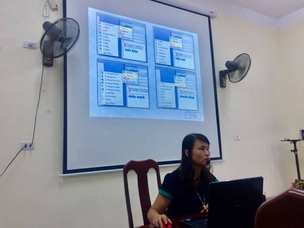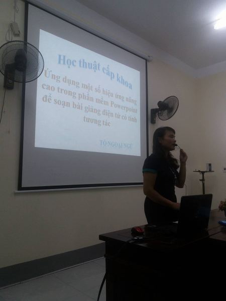 Buổi học thuật kéo dài gần 2 tiếng với sự truyền đạt và sự chia sẻ của Ths. Ngụy Vân Thùy về kinh nghiệm soạn bài giảng điện tử có tính tương tác bằng phần mềm Powerpoint và các hiệu ứng tích hợp sẵn trên phần mềm Powerpoint. Báo cáo viên đã chỉ ra được những ưu, nhược điểm của phần mềm Powerpoint, từ đó vận dụng và tích hợp các hiệu ứng để soạn ra được các bài giảng có tính tương tác cao giữa nguời dạy và người học nhằm gây hứng thú cho người họcvà nâng cao chất lượng tiết giảng.