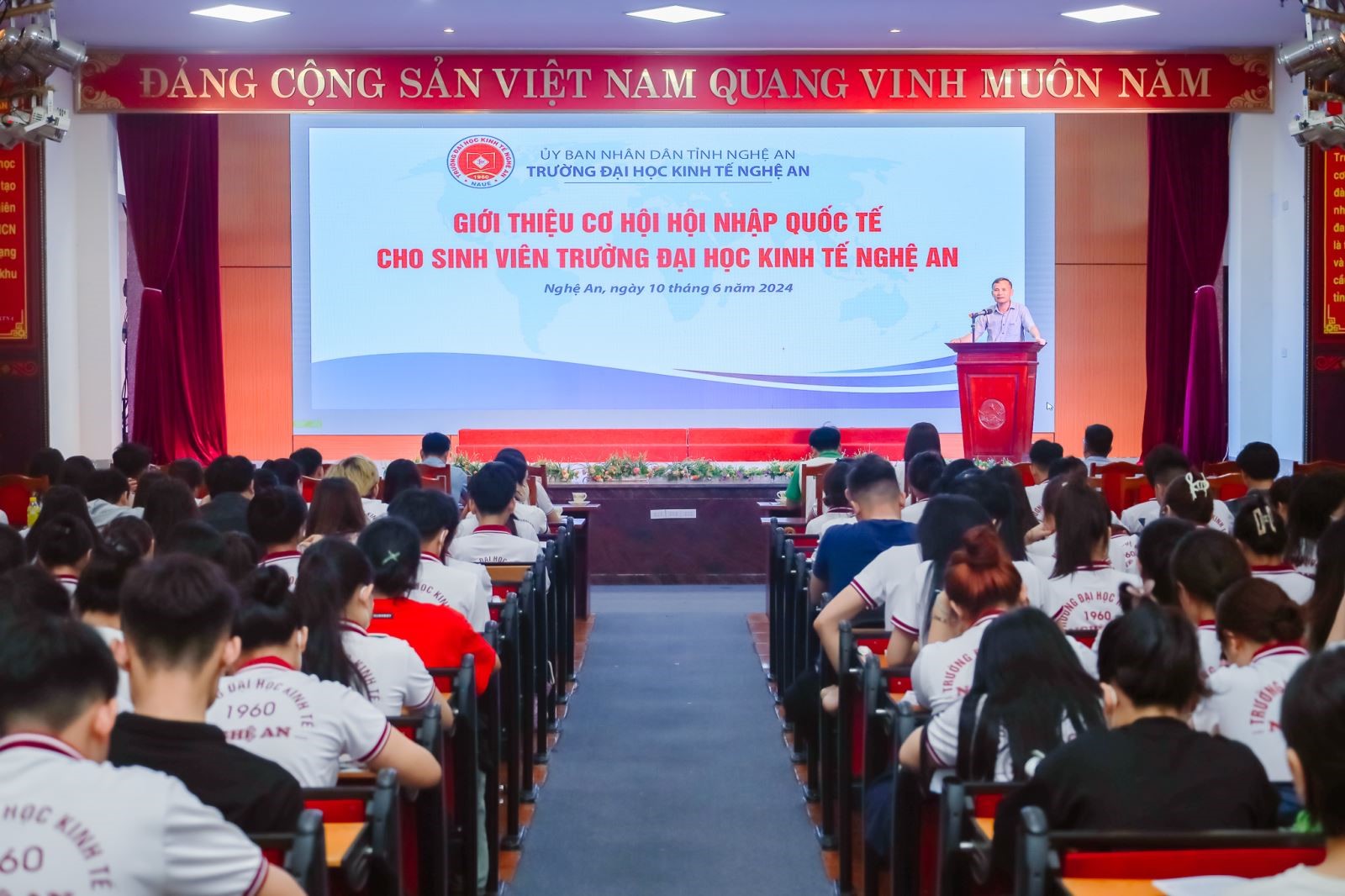 Có nhiều chương trình trao đổi sinh viên và hợp tác quốc tế, tạo cơ hội cho sinh viên tiếp cận với nền giáo dục và môi trường làm việc ở các quốc gia khác. Nhằm giúp sinh viên tự tin, bản lĩnh, sẵn sàng hội nhập để trở thành công dân toàn cầu, bên cạnh việc đào tạo các kiến thức chuyên môn, Trường Đại học Kinh tế Nghệ An còn không ngừng mang đến cơ hội học tập, thực tập thú vị tại các trường đại học, doanh nghiệp uy tín tại nước ngoài cho sinh viên. Các bạn sinh viên NAUE sẽ được cung cấp những thông tin cần và đủ về cơ hội trở thành thực tập sinh tại các nước như: Nhật Bản, Đan Mạch, Mỹ, Đức, Úc, Canada, Newzealand, Đan Mạch, Hàn Quốc, Trung Quốc,…;