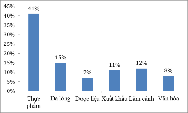 Chú thích: TP. Thực phẩm; DL. Da lông; Dli. Dược liệu; MBXK. Xuất khẩu; LC. Làm cảnh; VHTL. Văn hóa nghệ thuật.