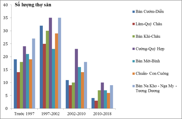 Bảng 5. Thống kê số thợ săn trong các giai đoạn từ trước năm 1997 đến nay