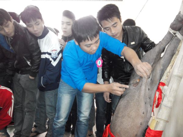 Giờ thực hành môn Chăn nuôi lợn của sinh viên ngành Thú y