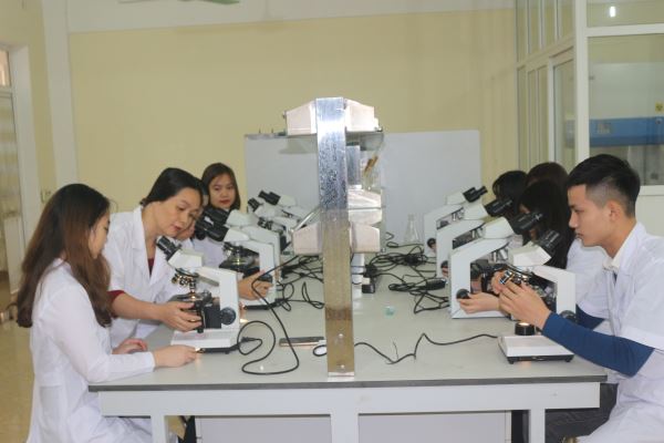 Giờ thực hành môn Vi sinh vật của sinh viên ngành Thú y