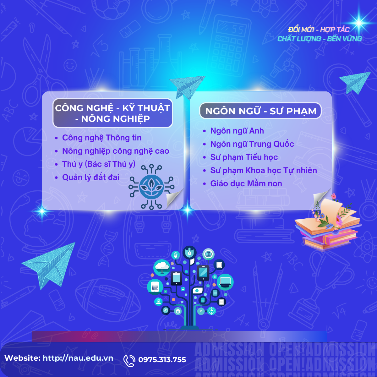 Ngành đào tạo: Công nghệ thông tin • Nông nghiệp công nghệ cao • Thú y • Quản lý đất đai
