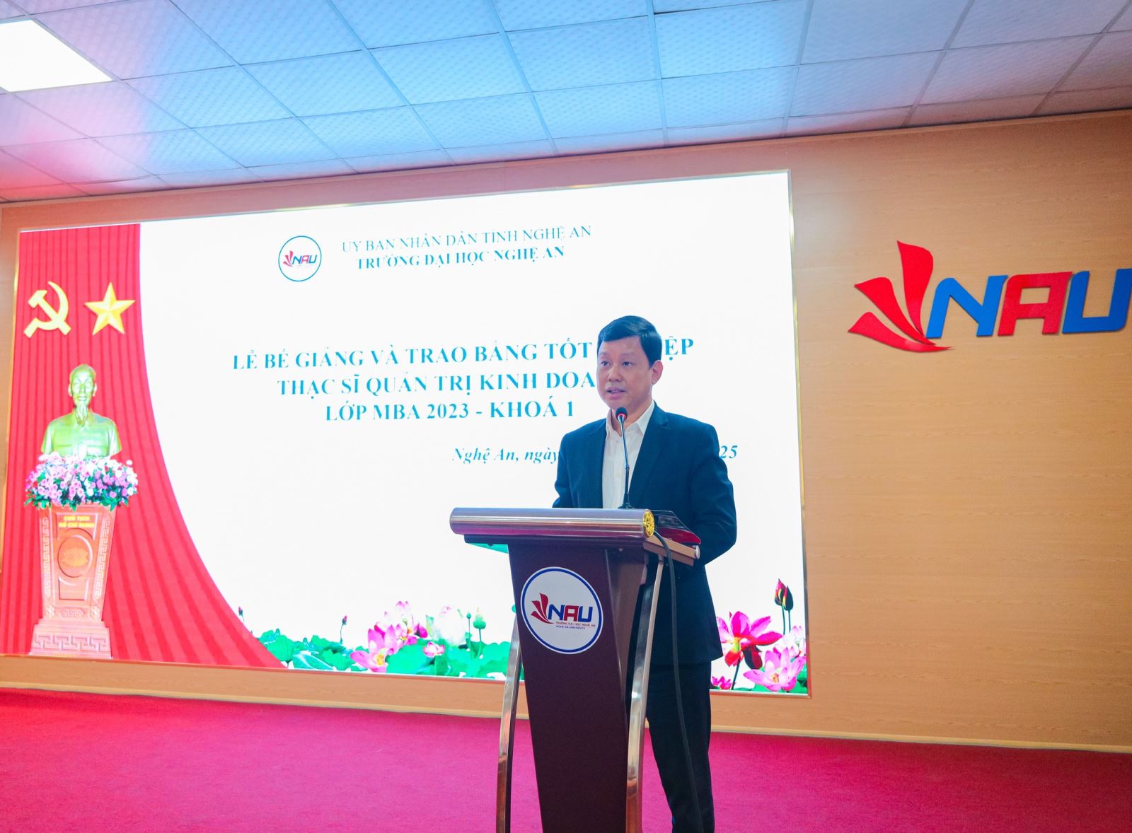 Trong phát biểu tại buổi lễ, đại diện lãnh đạo Trường Đại học Nghệ An bày tỏ niềm tự hào về thế hệ tân Thạc sĩ đầu tiên: