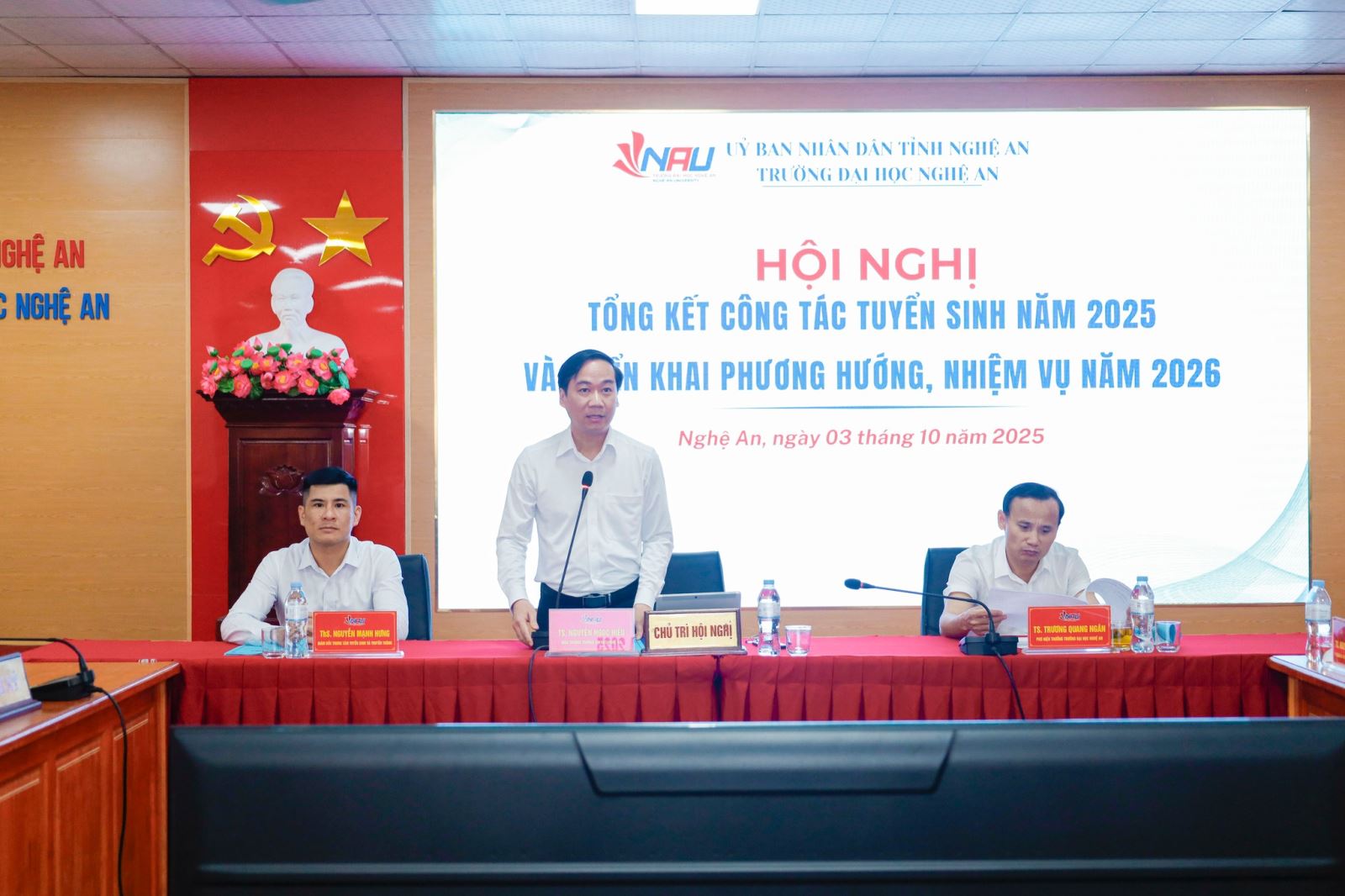 Chiều ngày 03/10/2025, Trường Đại học Nghệ An long trọng tổ chức Hội nghị tổng kết công tác tuyển sinh và truyền thông năm 2025 và triển khai phương hướng, nhiệm vụ năm 2026. Đây là hoạt động quan trọng nhằm nhìn lại chặng đường nỗ lực của toàn Trường trong công tác tuyển sinh và truyền thông, đồng thời đề ra những định hướng chiến lược để tiếp tục đổi mới, nâng tầm hiệu quả trong giai đoạn tới.