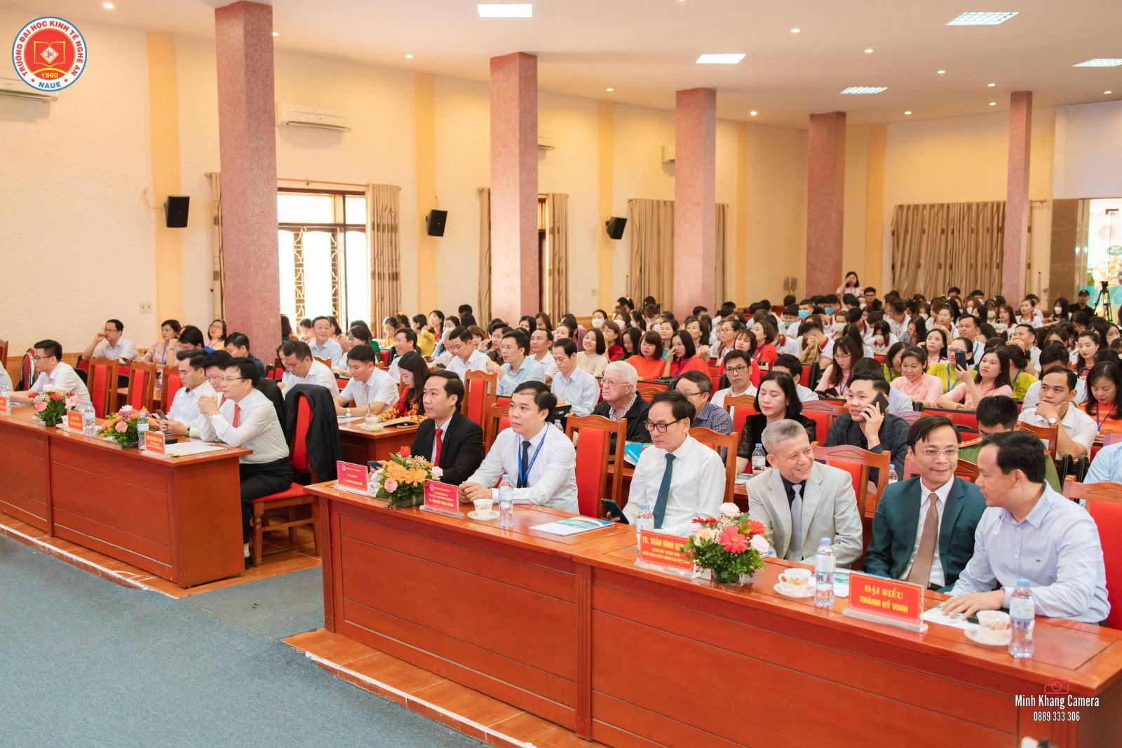 Về phía Trường Đại học Kinh tế Nghệ An có sự hiện diện của TS. Nguyễn Đình Tường - Bí thư Đảng ủy, Chủ tịch Hội đồng trường; TS. Nguyễn Ngọc Hiếu - Hiệu trưởng, Các đồng chí trong Ban giám hiệu, trưởng, phó đơn vị, cán bộ giảng viên và các em sinh viên, cựu sinh viên trường.