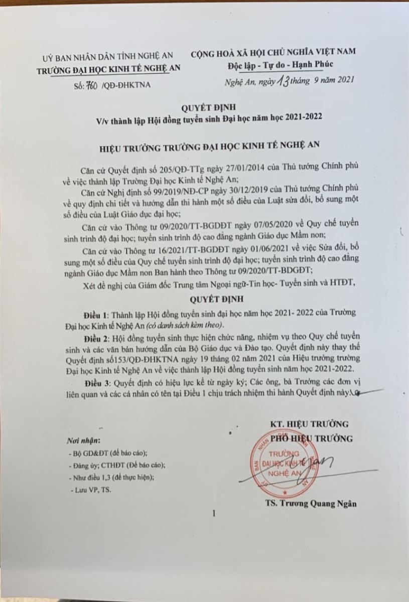 Quyết định về việc Thành lập Hội đồng tuyển sinh Đại học năm học 2021-2022 13/09/2021 10:01 4401 lượt xem