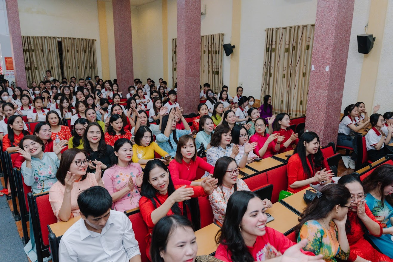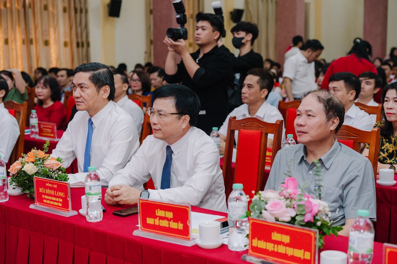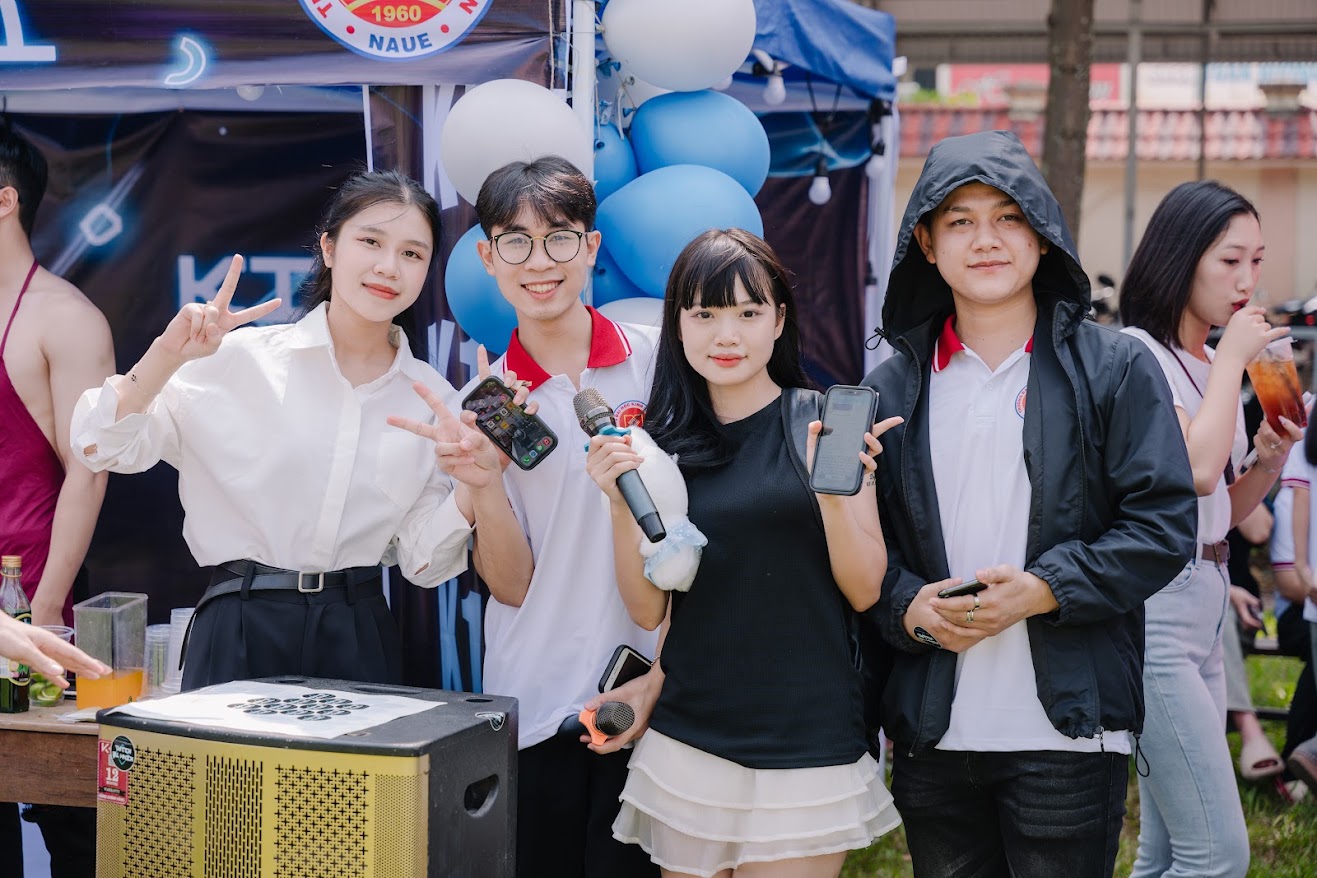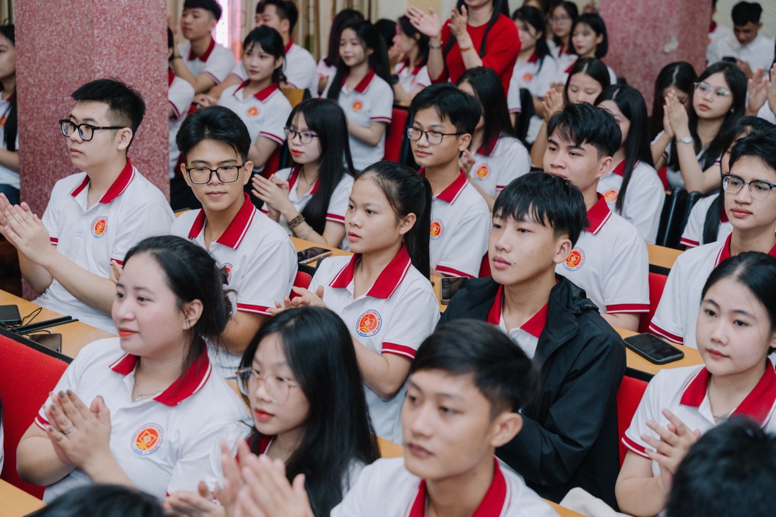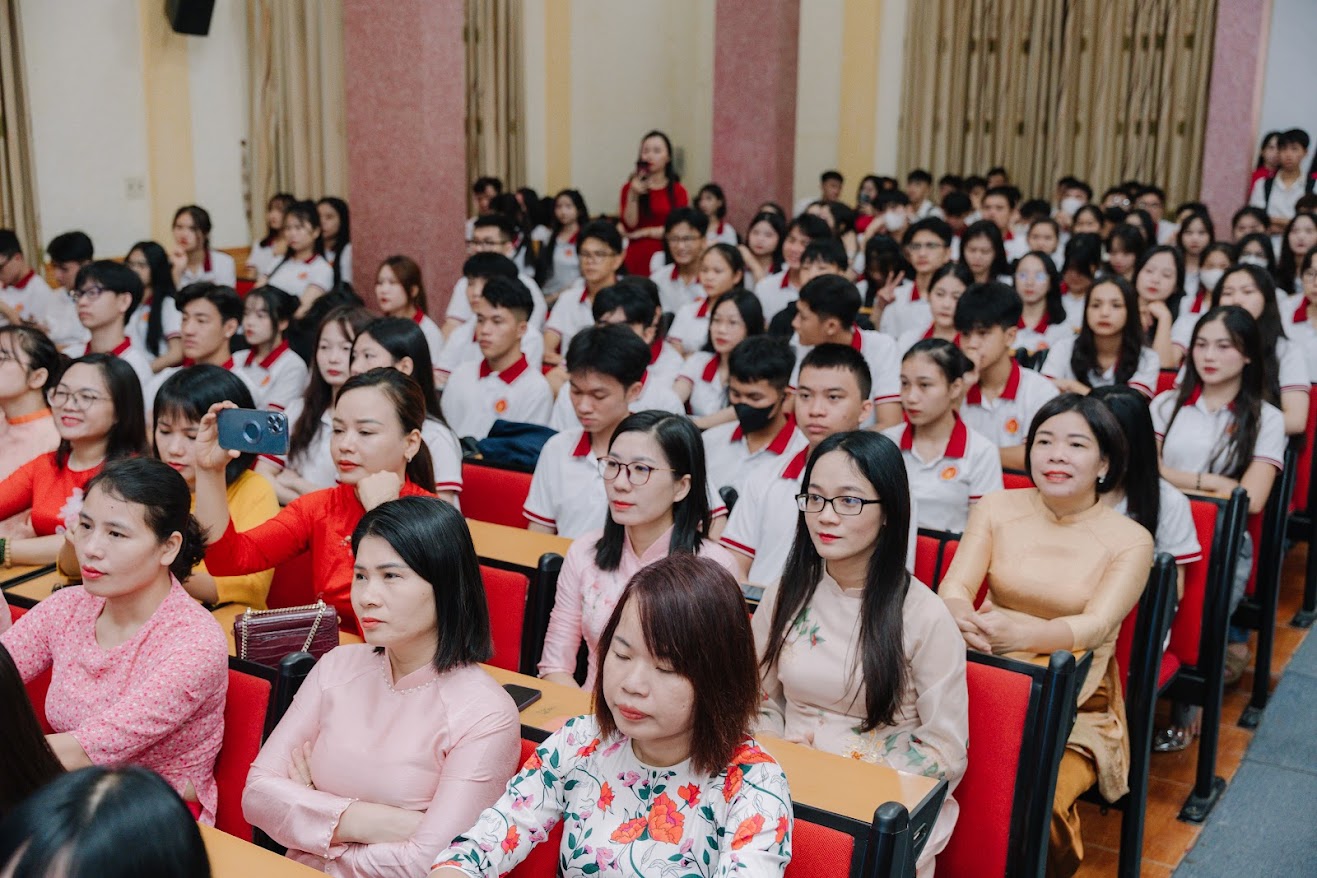 Bên cạnh đó là sự hiện diện của TS. Nguyễn Đình Tường - Bí thư Đảng uỷ, Chủ tịch Hội đồng trường, TS. Nguyễn Ngọc Hiếu - Hiệu trưởng Nhà trường, Ban giám hiệu nhà trường cùng quý Thầy cô, cán bộ nhân viên và hàng nghìn sinh viên NAUE cùng tham gia trực tiếp tại hội trường lớn.