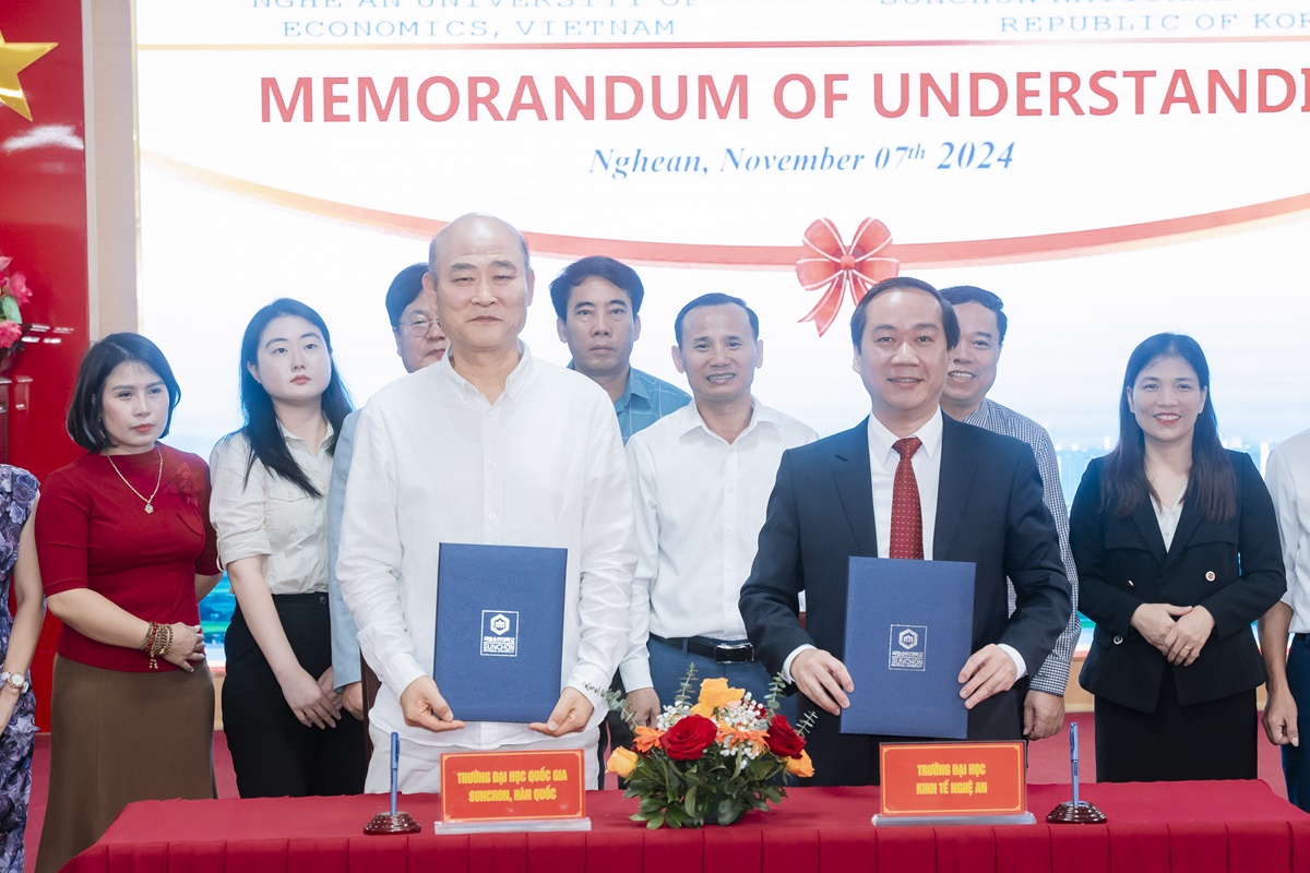 Cũng trong chương trình khai giảng, Trường Đại học Kinh tế Nghệ An đã tổ chức Lễ Ký kết hợp tác với các doanh nghiệp. Ký kết hợp tác là một trong những chiến lược quan trọng trong sự phát triển của Trường Đại học Kinh tế Nghệ An. Thông qua việc hợp tác, Nhà trường kỳ vọng các doanh nghiệp sẽ phối hợp trong việc tổ chức các buổi hội thảo để sinh viên có thể trau dồi và trang bị thêm các kỹ năng mềm, áp dụng kiến thức thực tiễn.