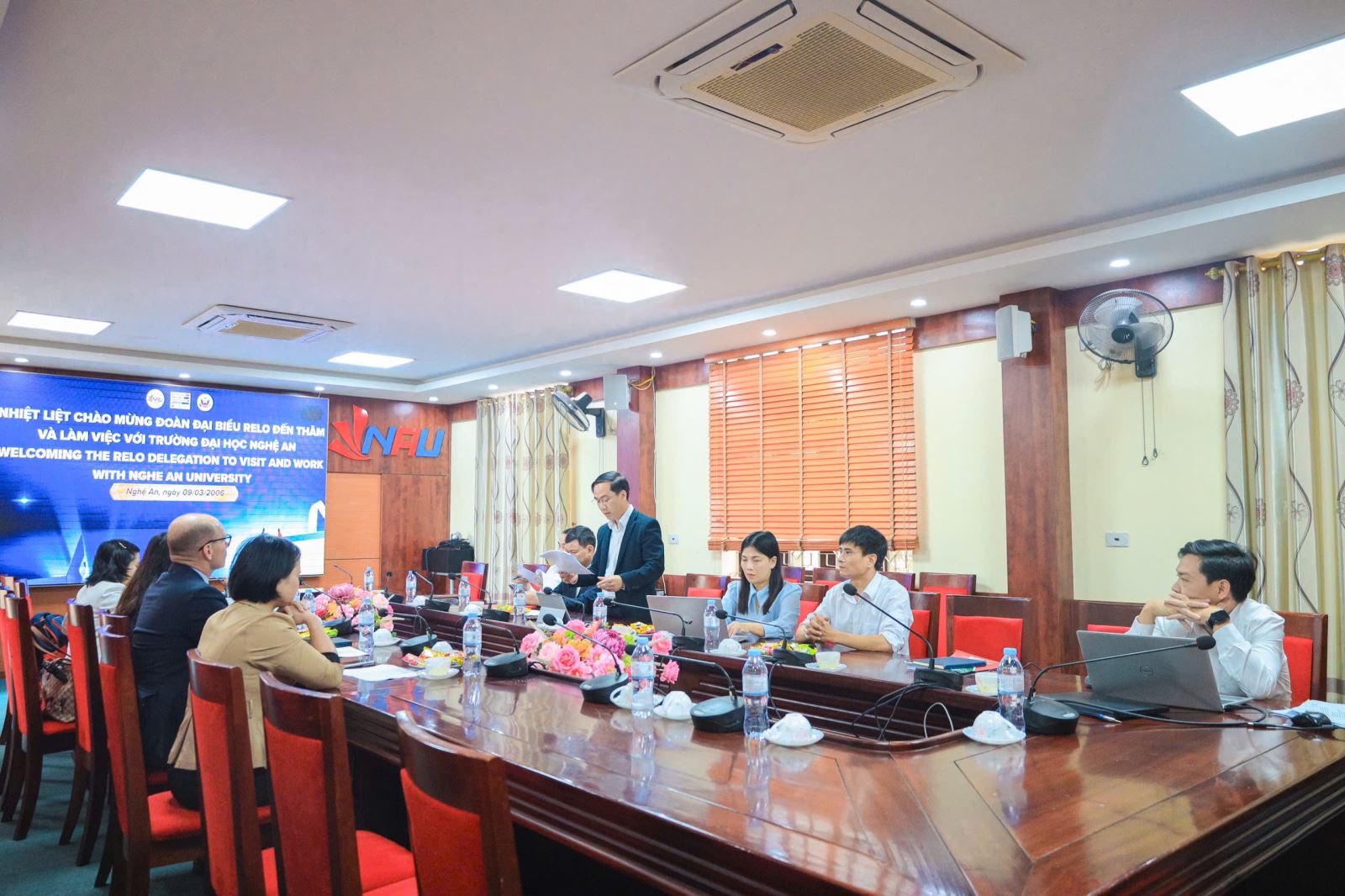 Về phía Trường Đại học Nghệ An đón tiếp đoàn có TS. Nguyễn Ngọc Hiếu - Hiệu trưởng Nhà trường; TS. Trần Anh Tư – Phó hiệu trưởng Nhà trường; Đại diện lãnh đạo các phòng TC-HC; Phòng Khoa học và HTQT; Phòng Quản lý đào tạo và Khoa chuyên môn.