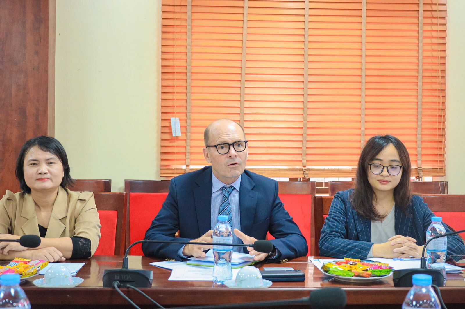 Về phía đoàn công tác, Ông David George Fay – Giám đốc Khu vực, Văn phòng Tiếng Anh Khu vực đánh giá cao những nỗ lực của Trường Đại học Nghệ An trong việc phát triển đào tạo ngoại ngữ và mở rộng hợp tác quốc tế. Ông khẳng định RELO luôn sẵn sàng hỗ trợ các trường đại học tại Việt Nam thông qua các chương trình tập huấn giảng viên, học bổng, hội thảo học thuật và các dự án nâng cao chất lượng giảng dạy tiếng Anh, đồng thời bày tỏ kỳ vọng sẽ có nhiều hoạt động hợp tác thiết thực với Trường Đại học Nghệ An trong thời gian tới.